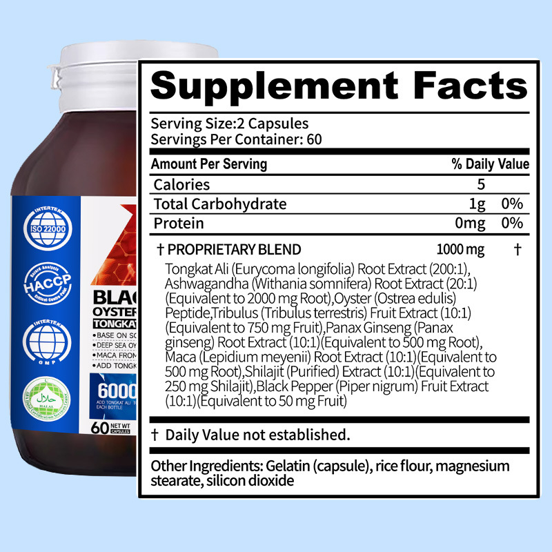| 生产许可证编号 | SC12744178100222 | 货号 | 黑玛卡牡蛎东革阿里胶囊 |