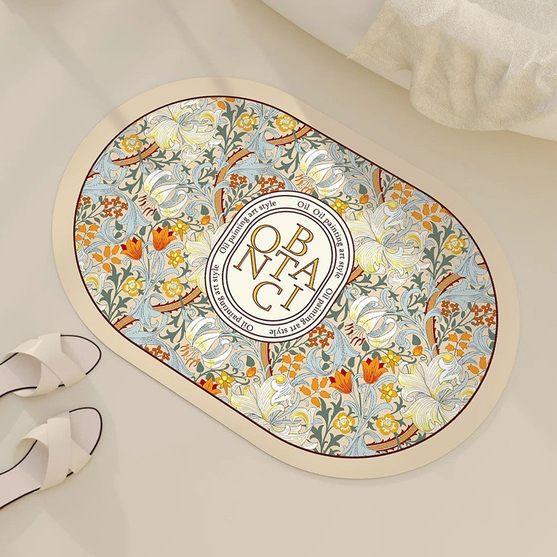 硅藻泥浴室防滑地垫卫生间进门软厨房门口吸水轻奢花卉