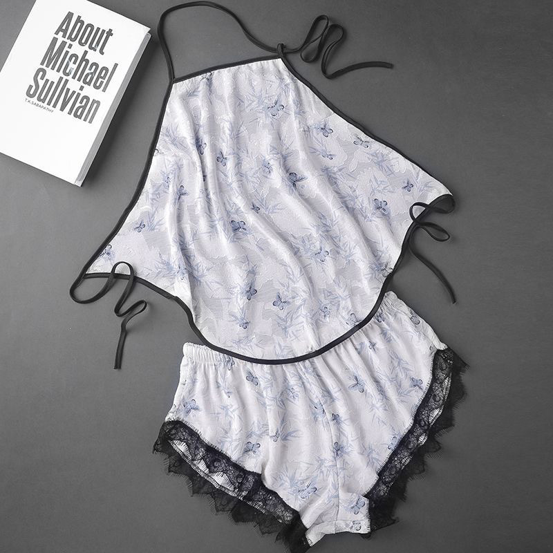 -斤夏季新款冰丝肚兜套装吊带性感清凉印花露背内衣短裤薄款