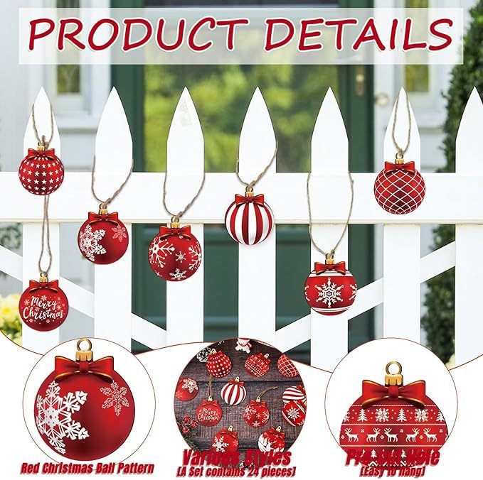 跨境创意圣诞球木质挂件套装圣诞树装饰家居派对布置用品装饰品