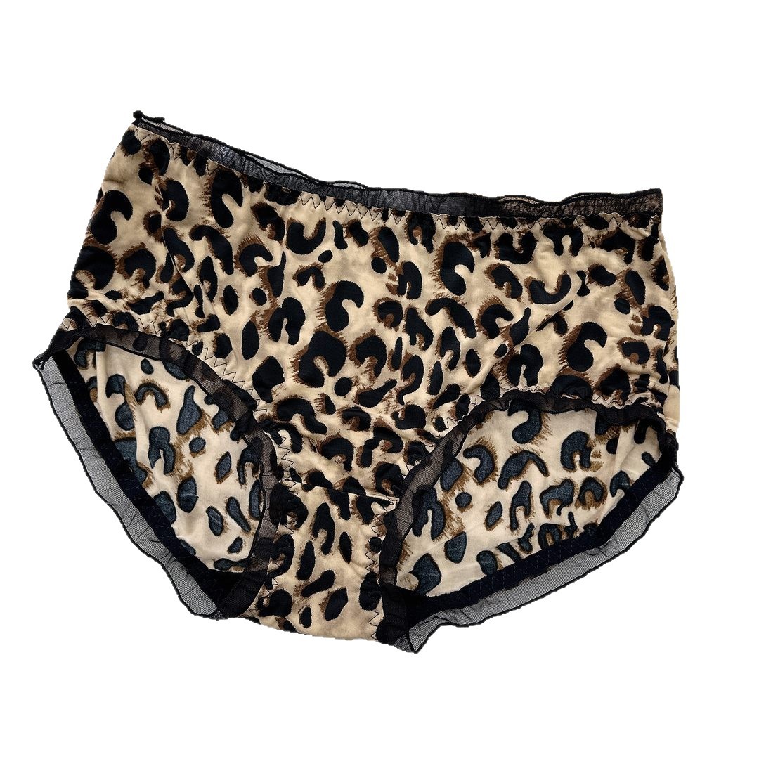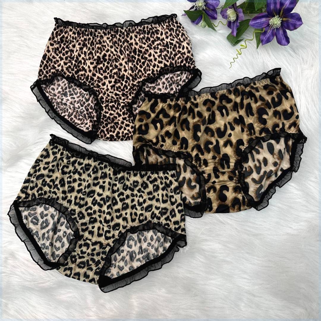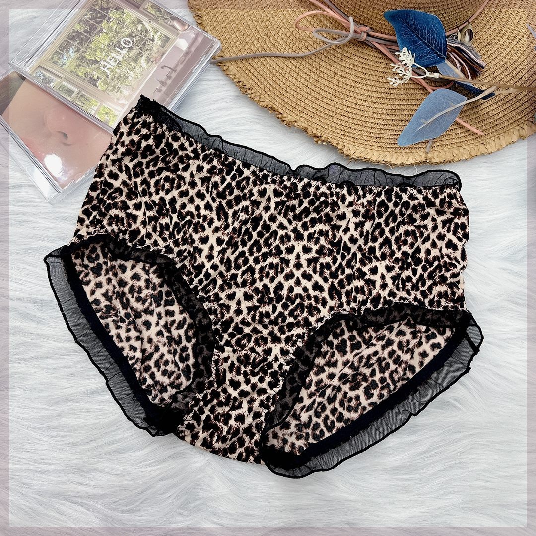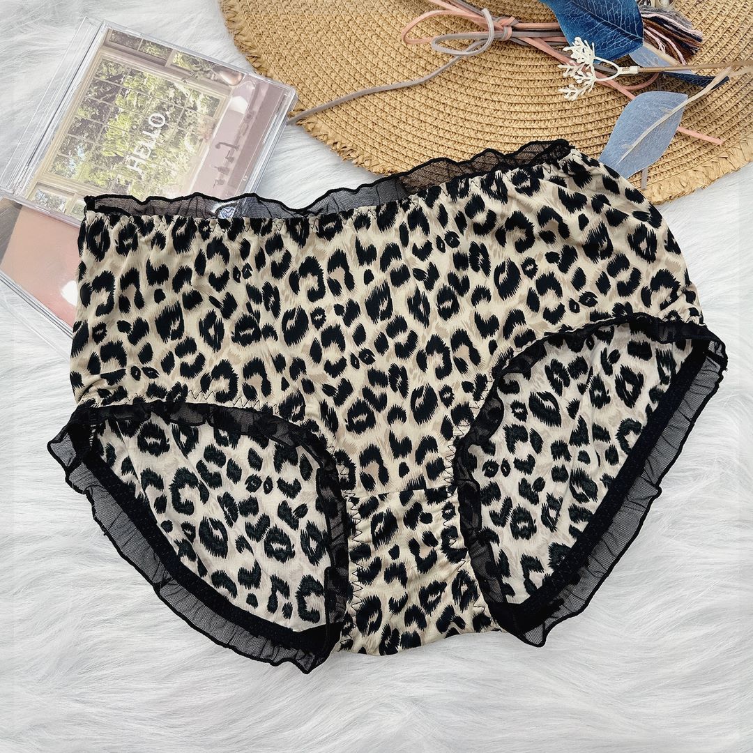 瑟萱娅蕾丝中腰冰丝豹纹女士三角内裤大码无痕性感时尚豹纹内裤棉