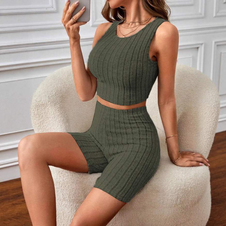 欧美亚马逊外贸新款家居服高腰背心时尚休闲舒适圆领女式套装
