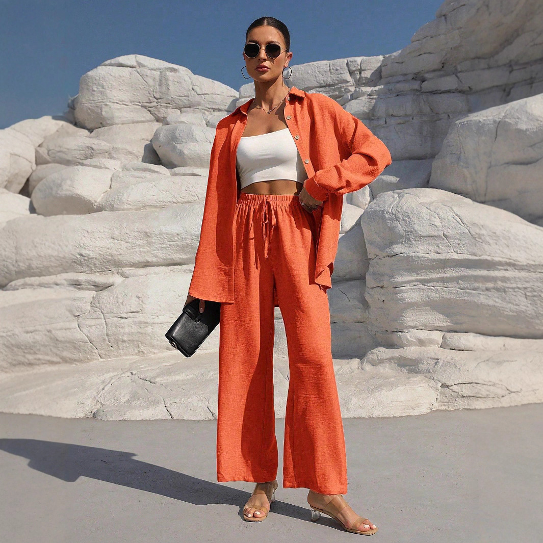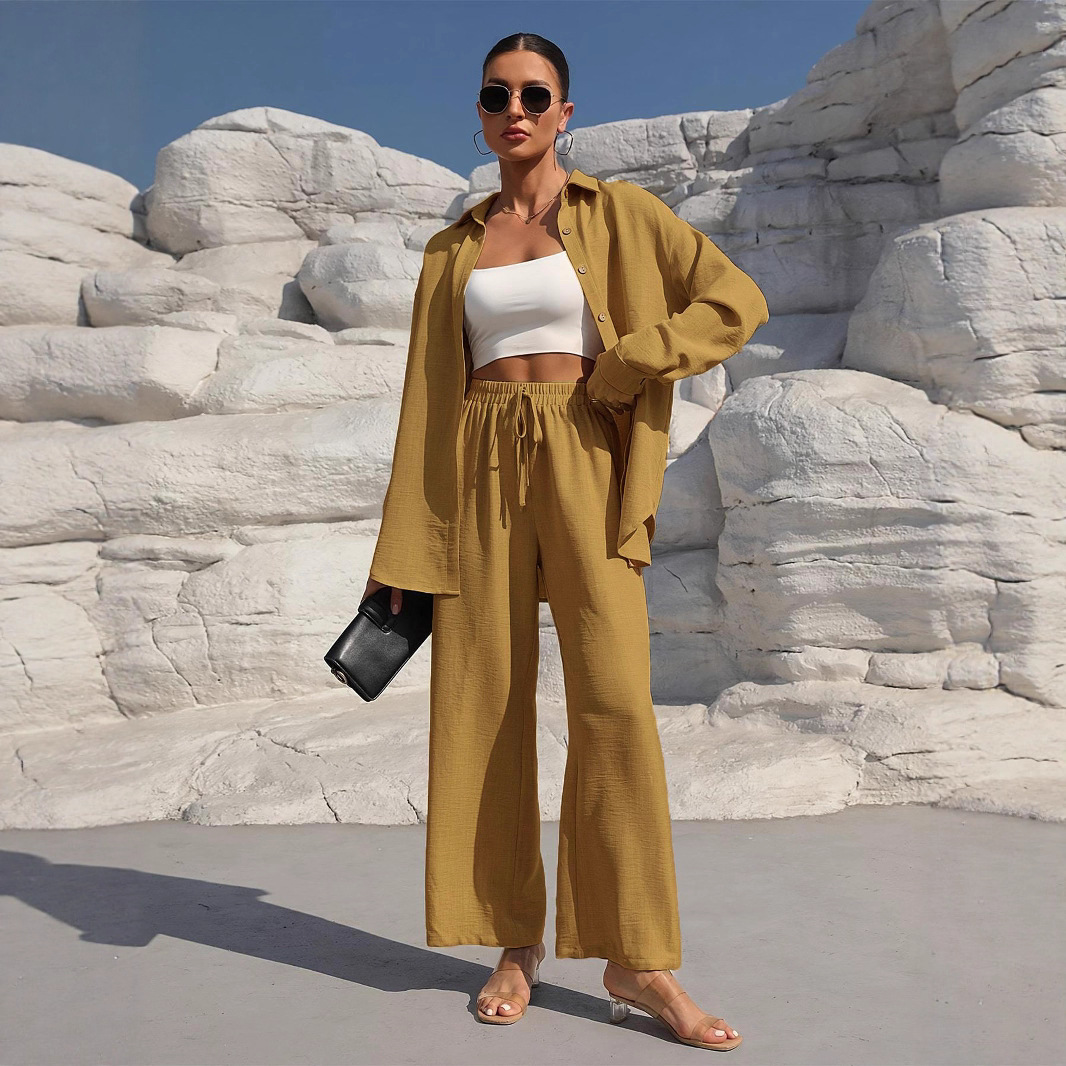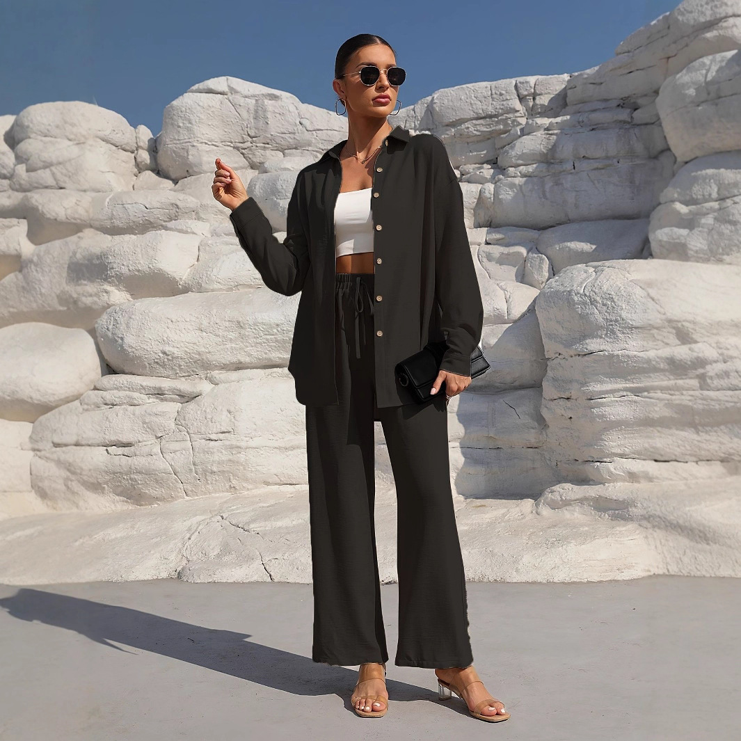 2025欧美跨境时尚春季款气质大码女装长袖开衫两件套休闲纯色套装