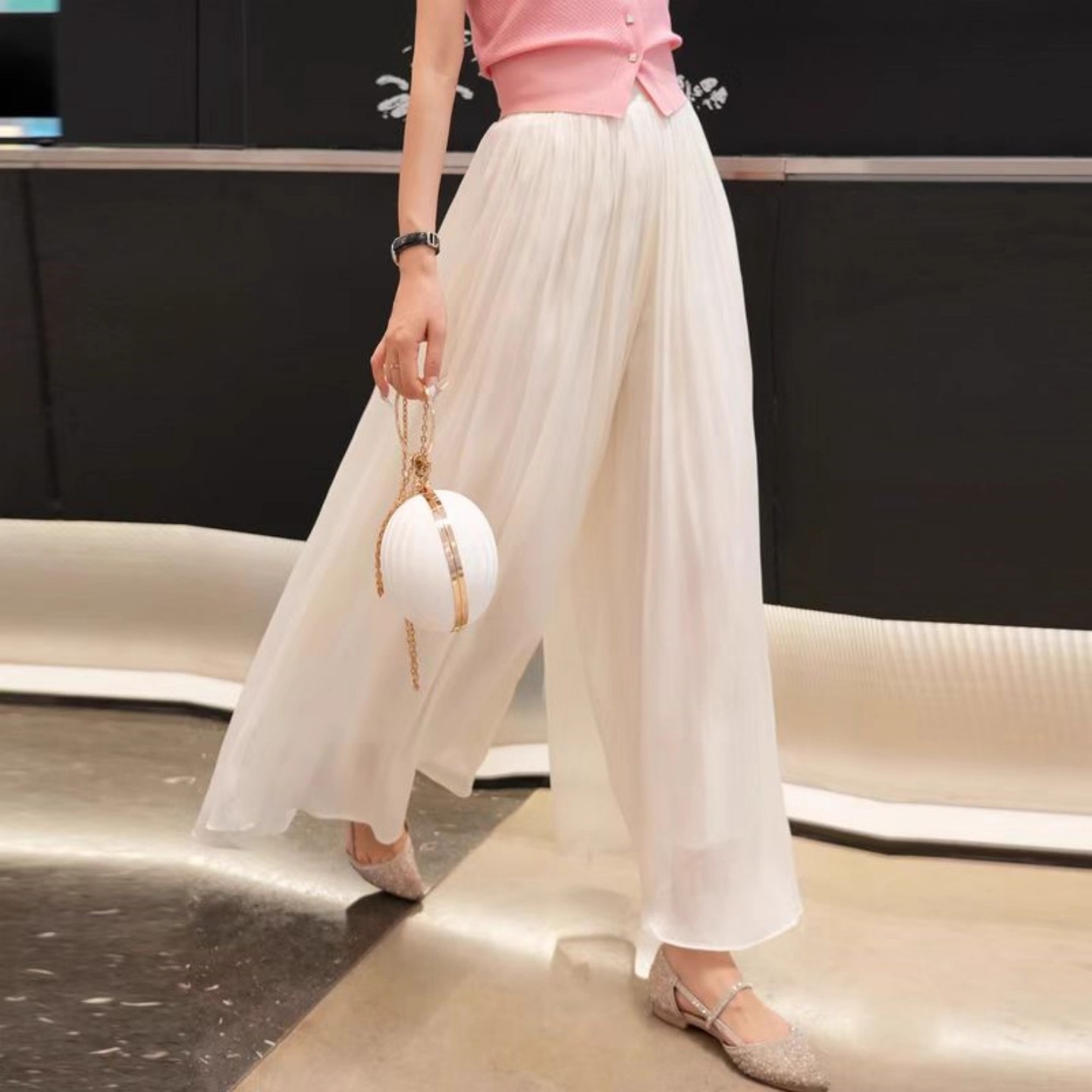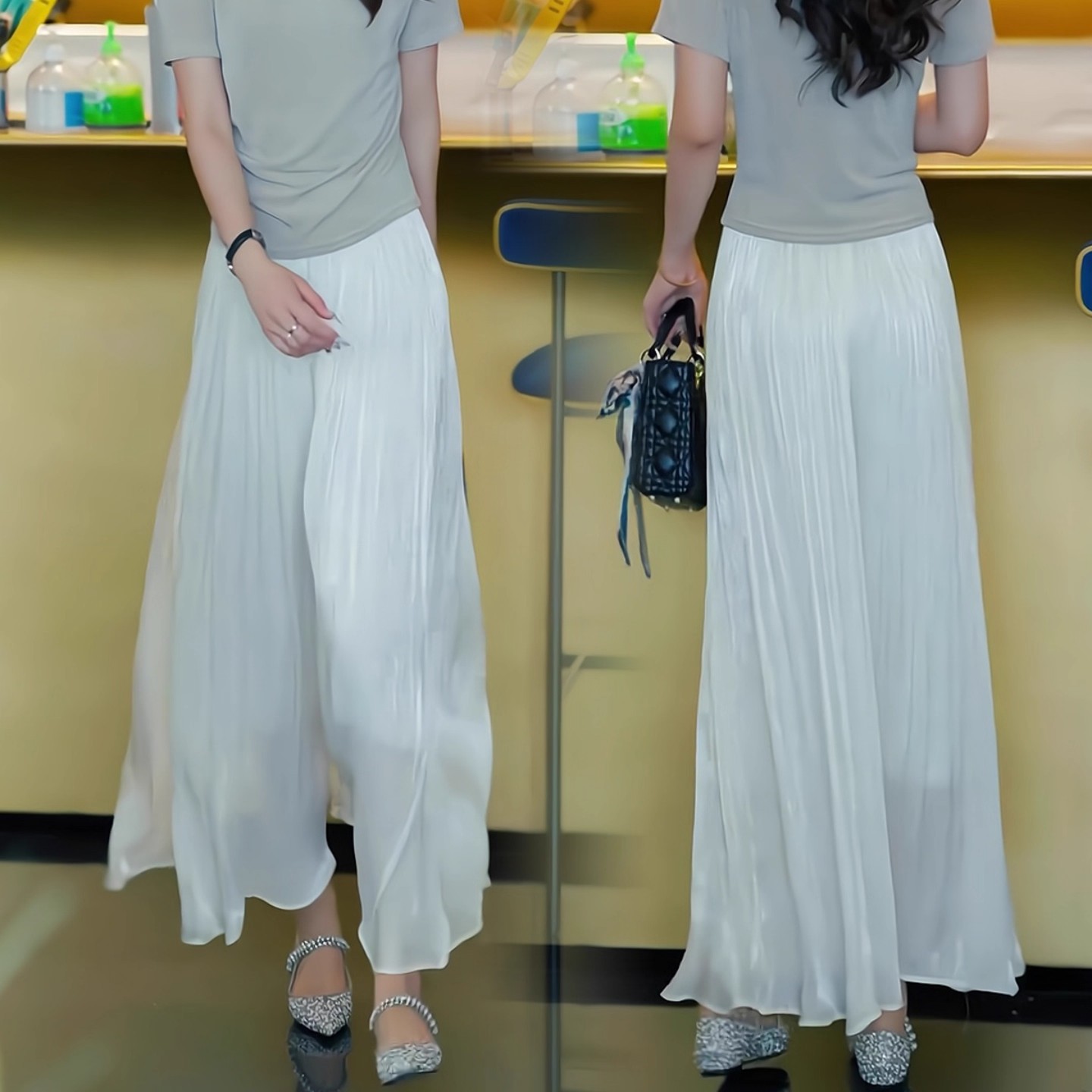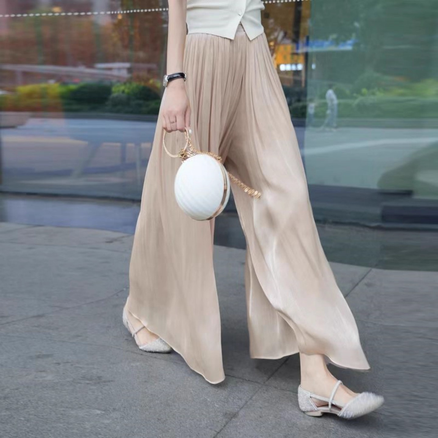 源头工厂琉璃纱冰丝阔腿裤裙2025夏季新款高腰宽松千褶裙裤定制