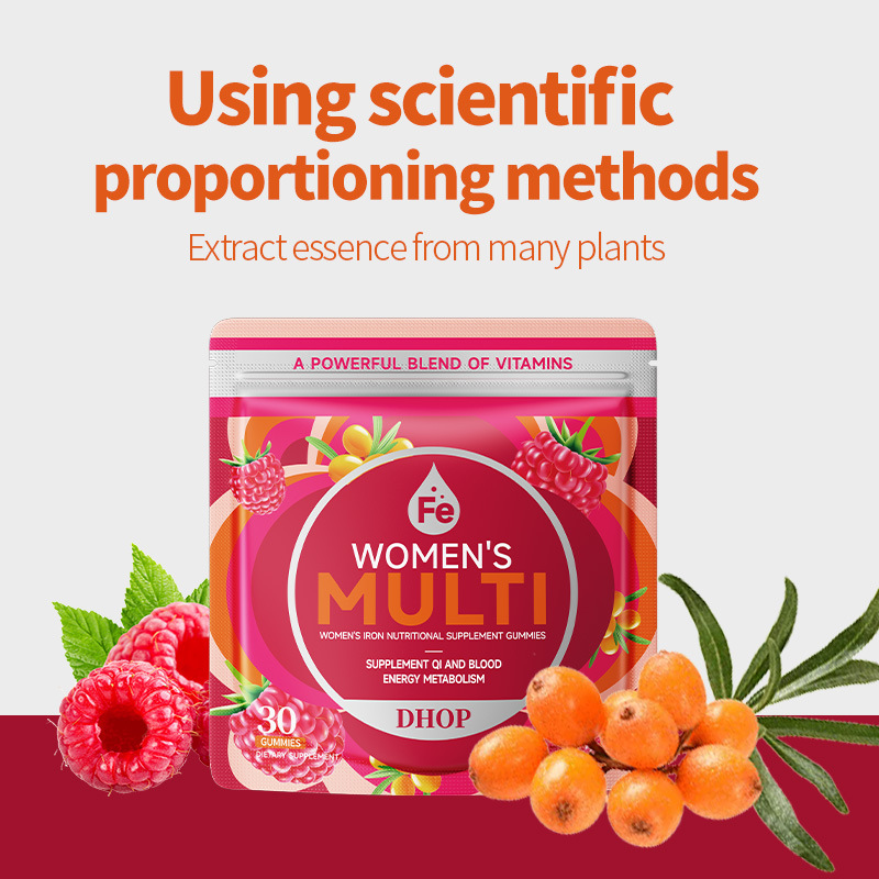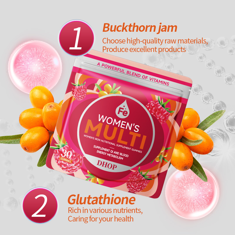 富铁营养补充剂软糖 跨境外贸胶原蛋白葡萄籽叶酸维生素补铁软糖