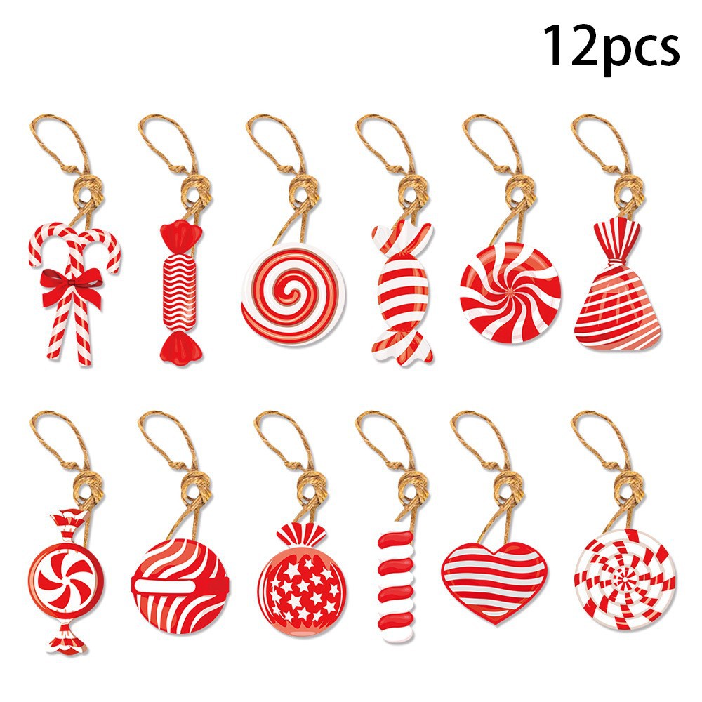 圣诞糖果棒棒糖饰品套装圣诞树装饰木制悬挂薄荷糖果手杖球吊坠