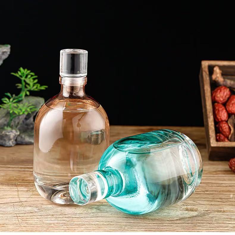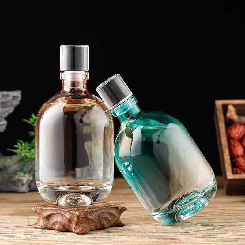 水晶渐变玻璃透明一斤装白酒容器带盖密封透明家用包装空酒瓶