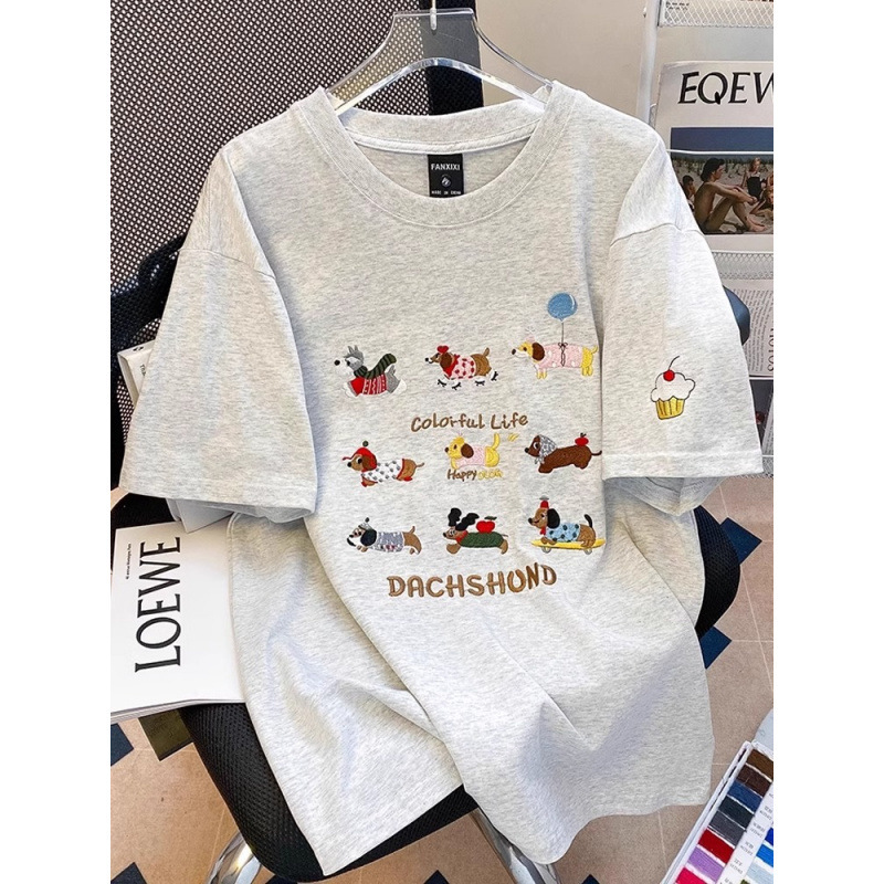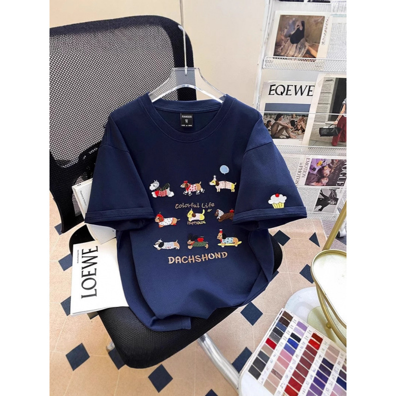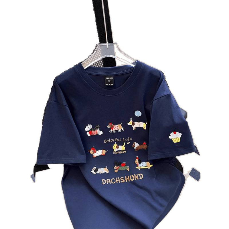 重工刺绣%纯棉情侣短袖恤女夏季宽松港味学生半袖上衣