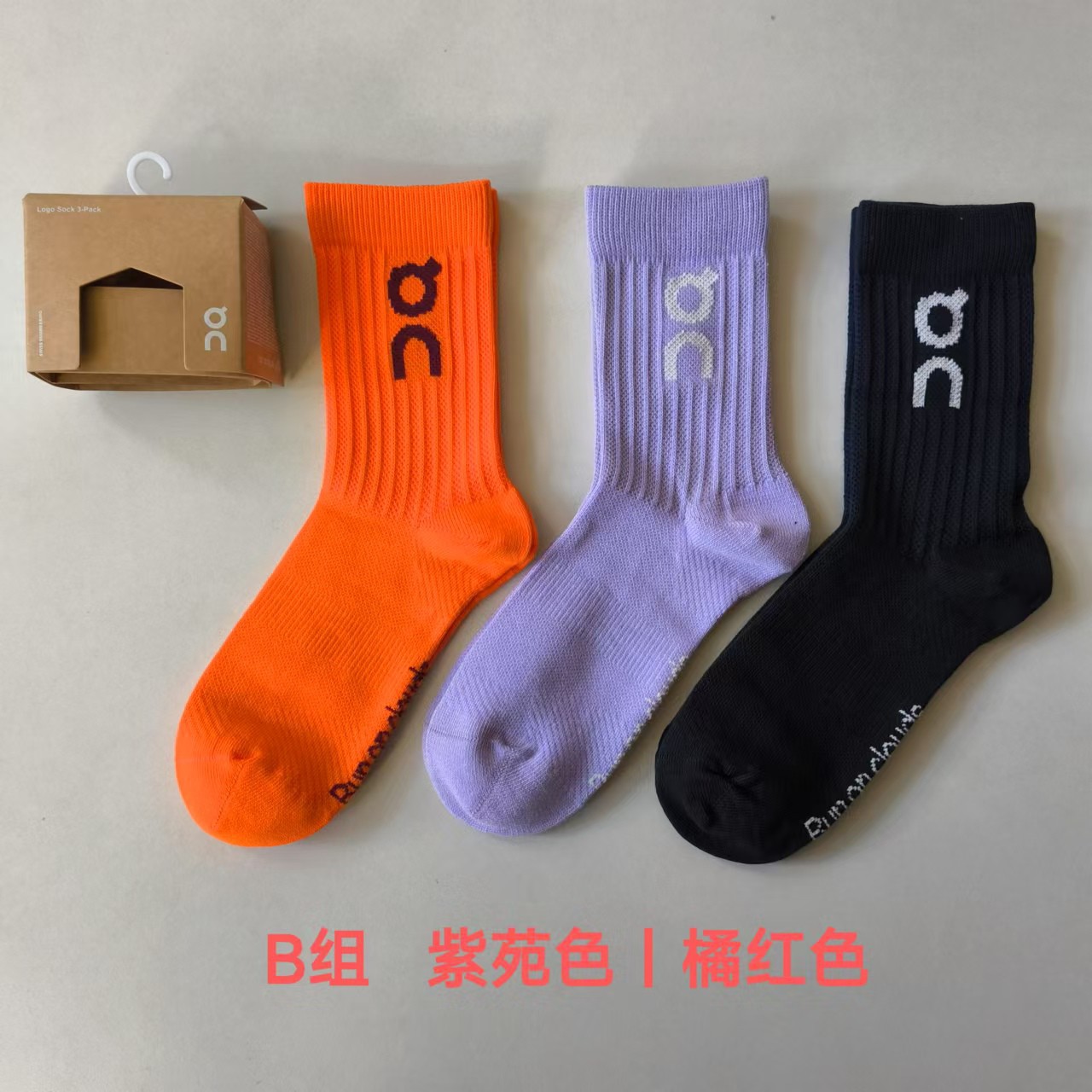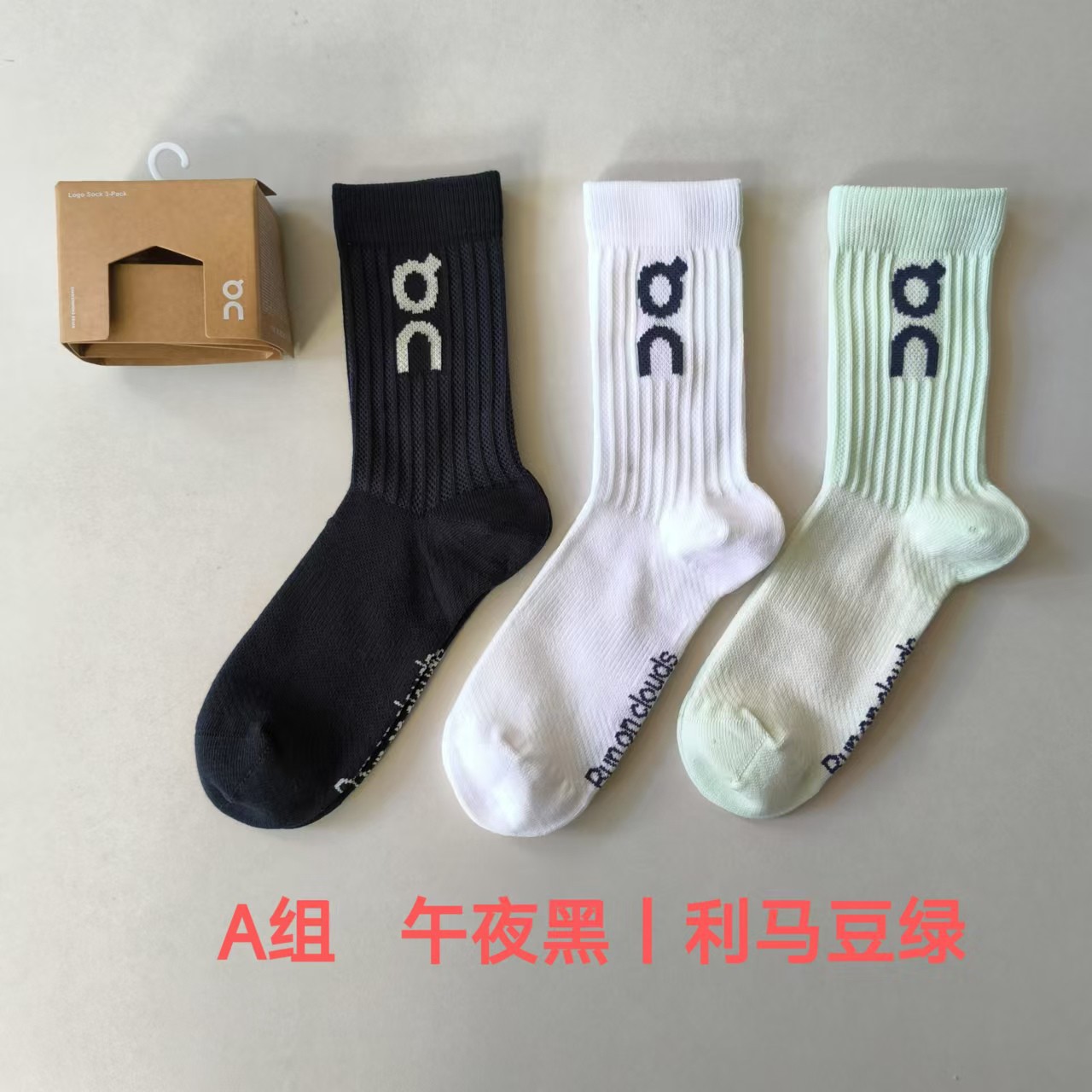新款On袜子 3双装跑情侣款袜子纯色情侣款潮袜时尚中筒袜运动袜