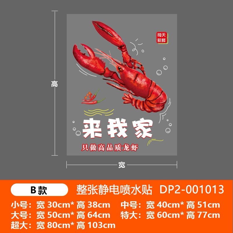 静电贴广告字玻璃贴小龙虾图案海报烧烤店透明玻璃门贴纸墙面自粘