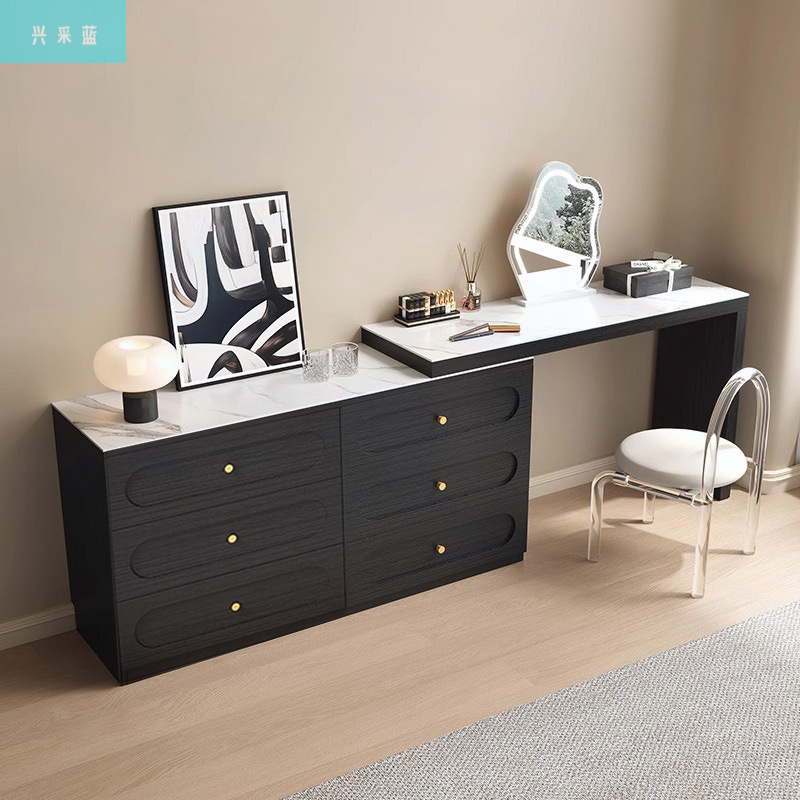 兴采旋转妆台斗柜二合一可伸缩实木卧室家具轻奢梳妆台岩板台面