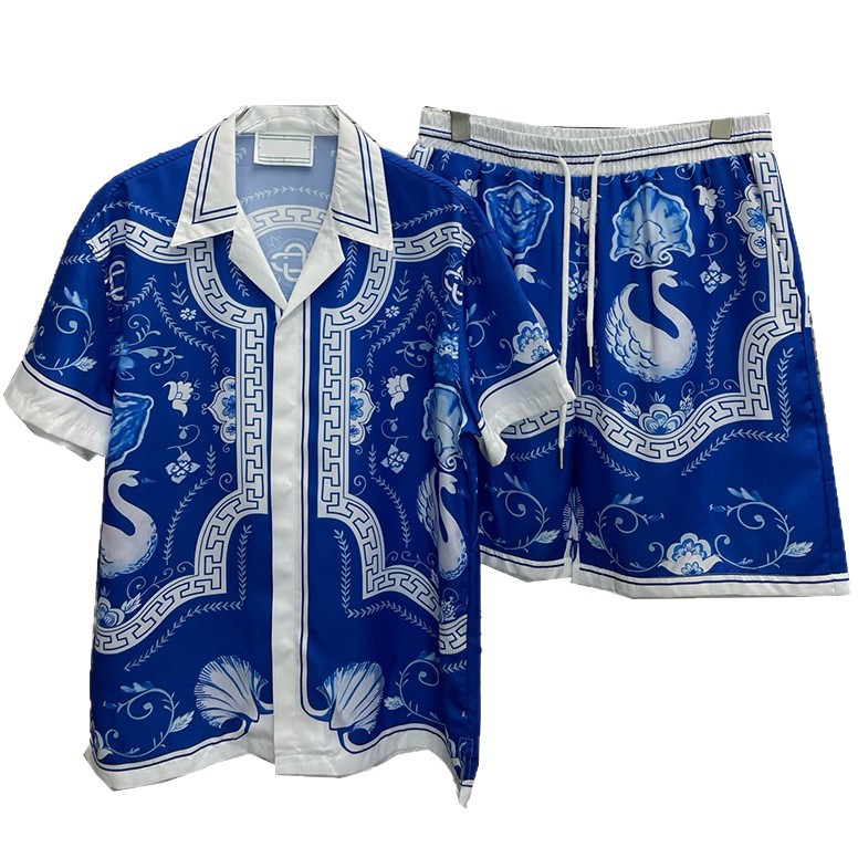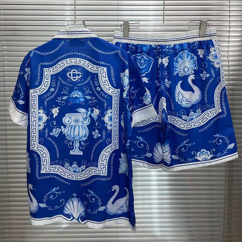 2025夏季欧美外贸时尚休闲数码印花男短袖衬衣沙滩裤套装潮流穿搭