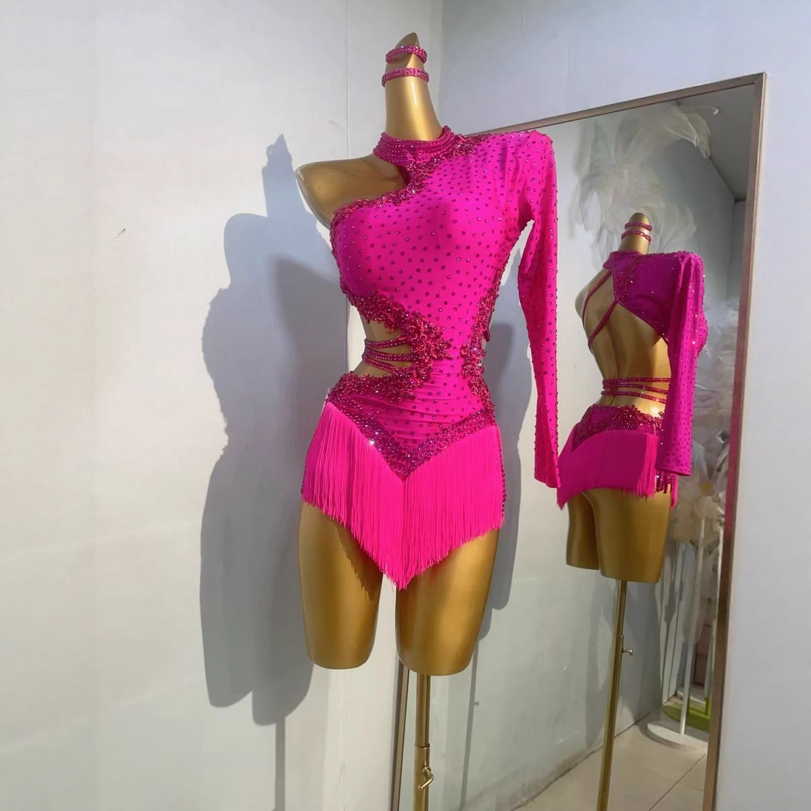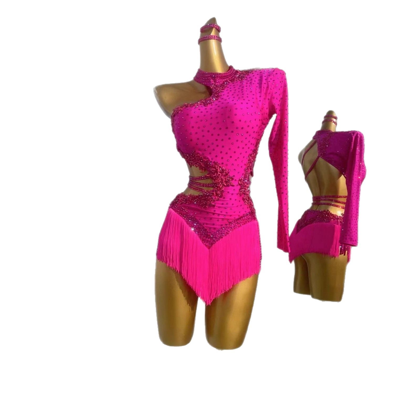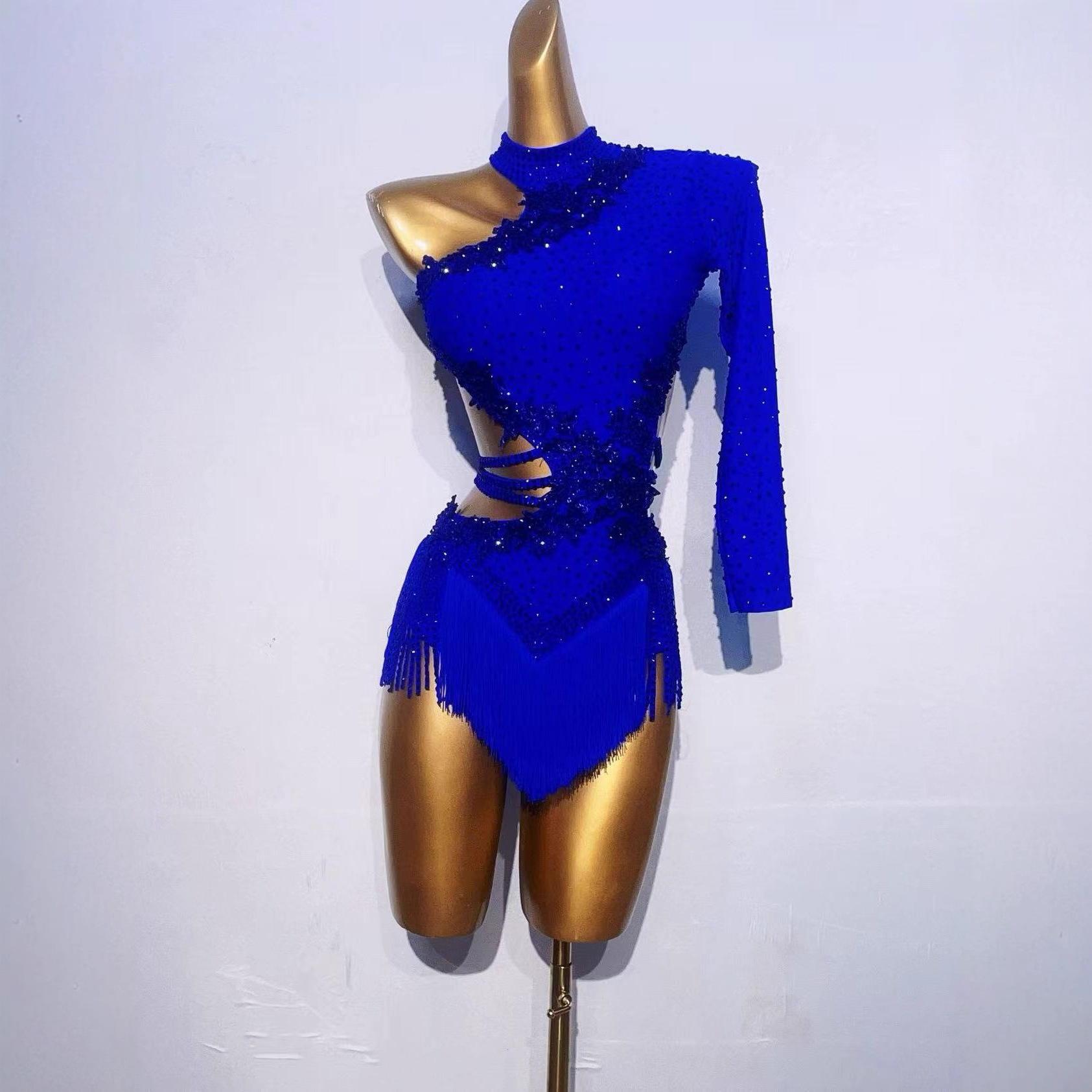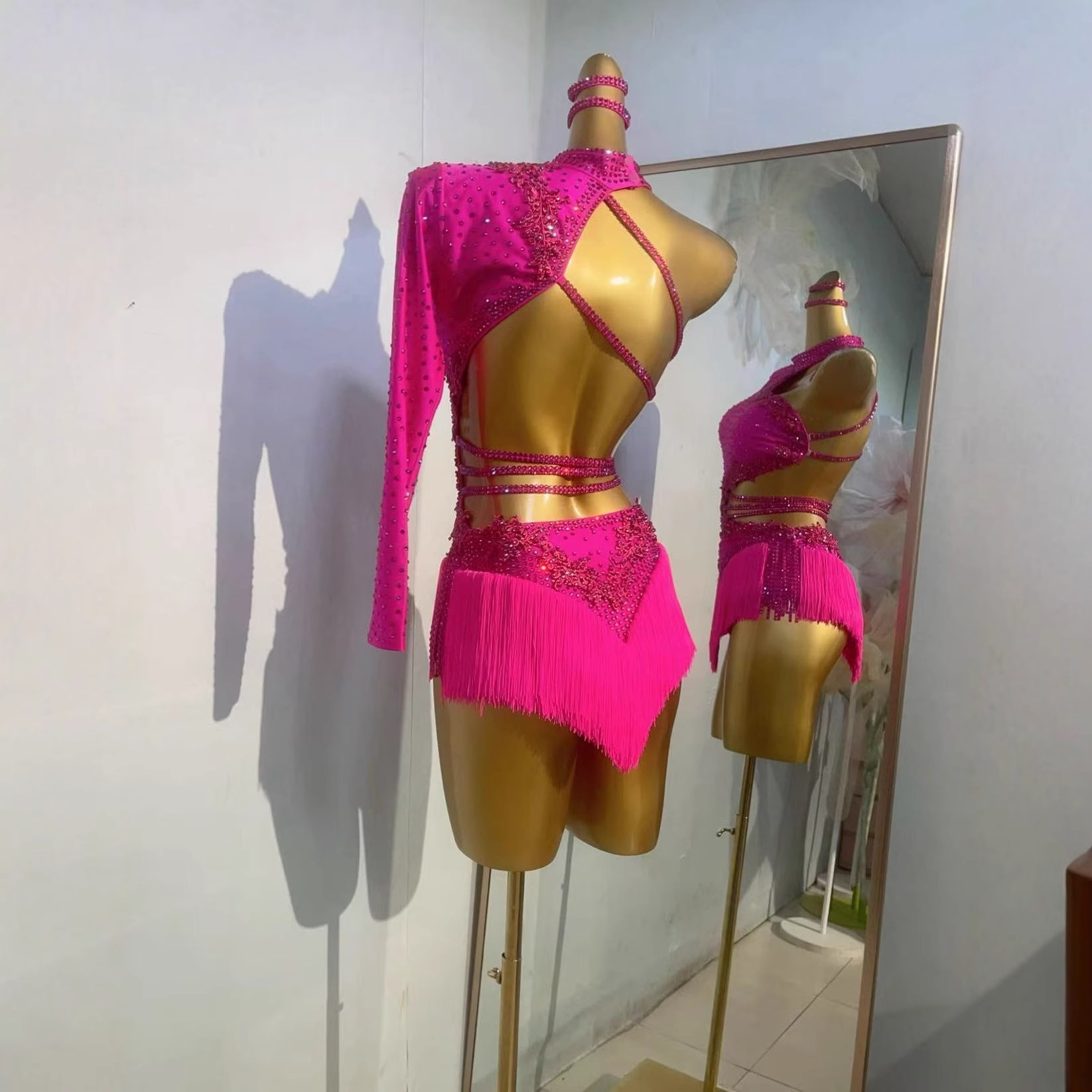 拉丁舞裙表演服女新款国标舞伦巴比赛连衣裙成人团体演出服流苏裙