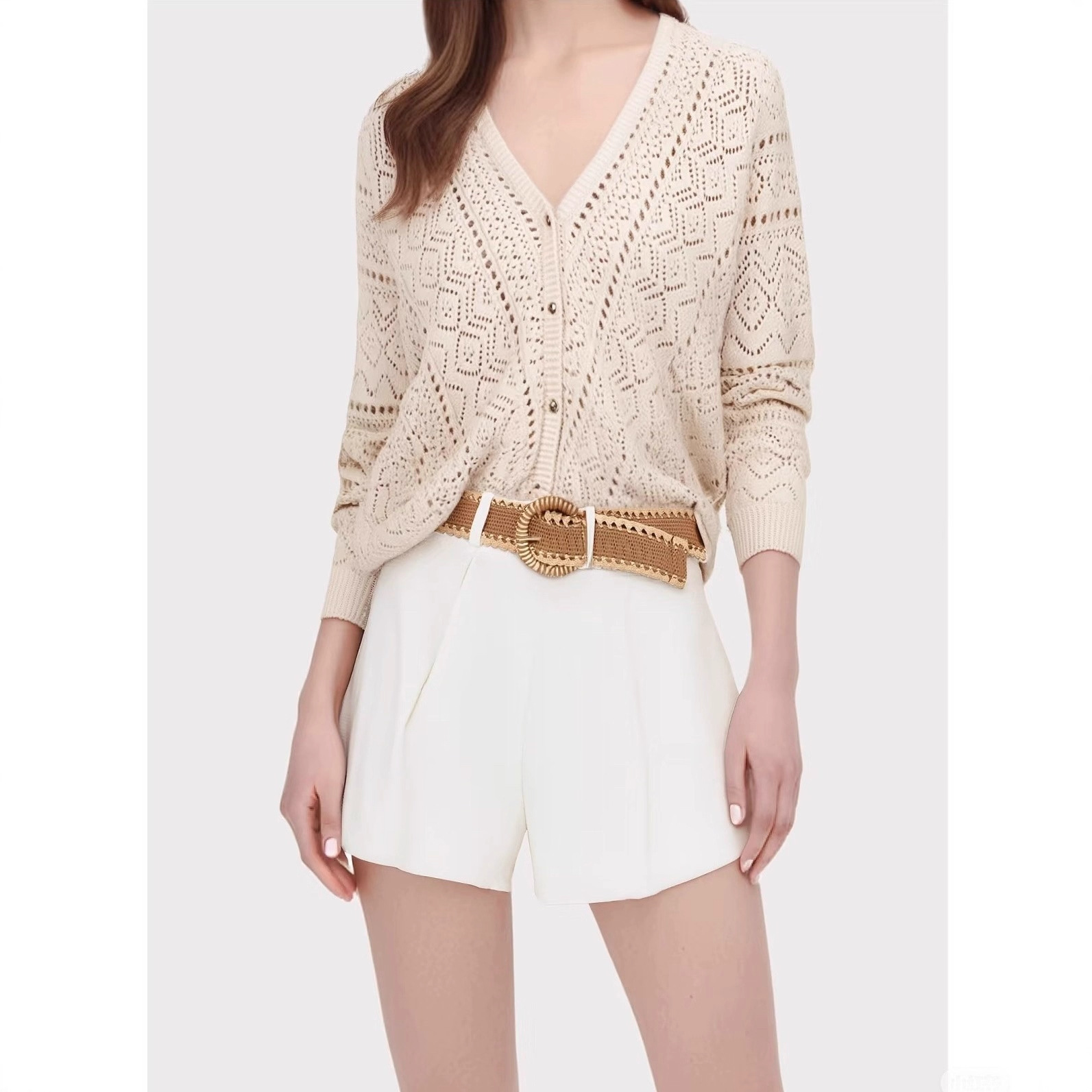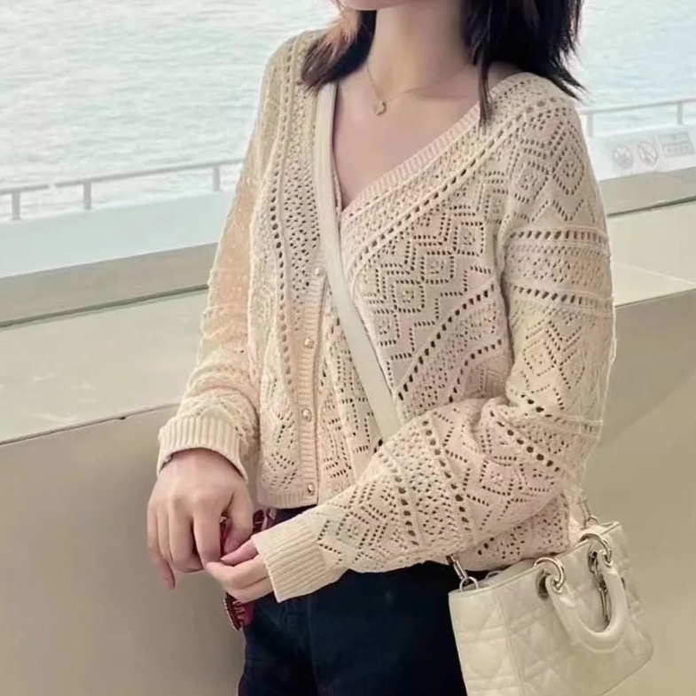 杨采钰同款25年春夏法式波西米亚上衣外搭镂空针织衫
