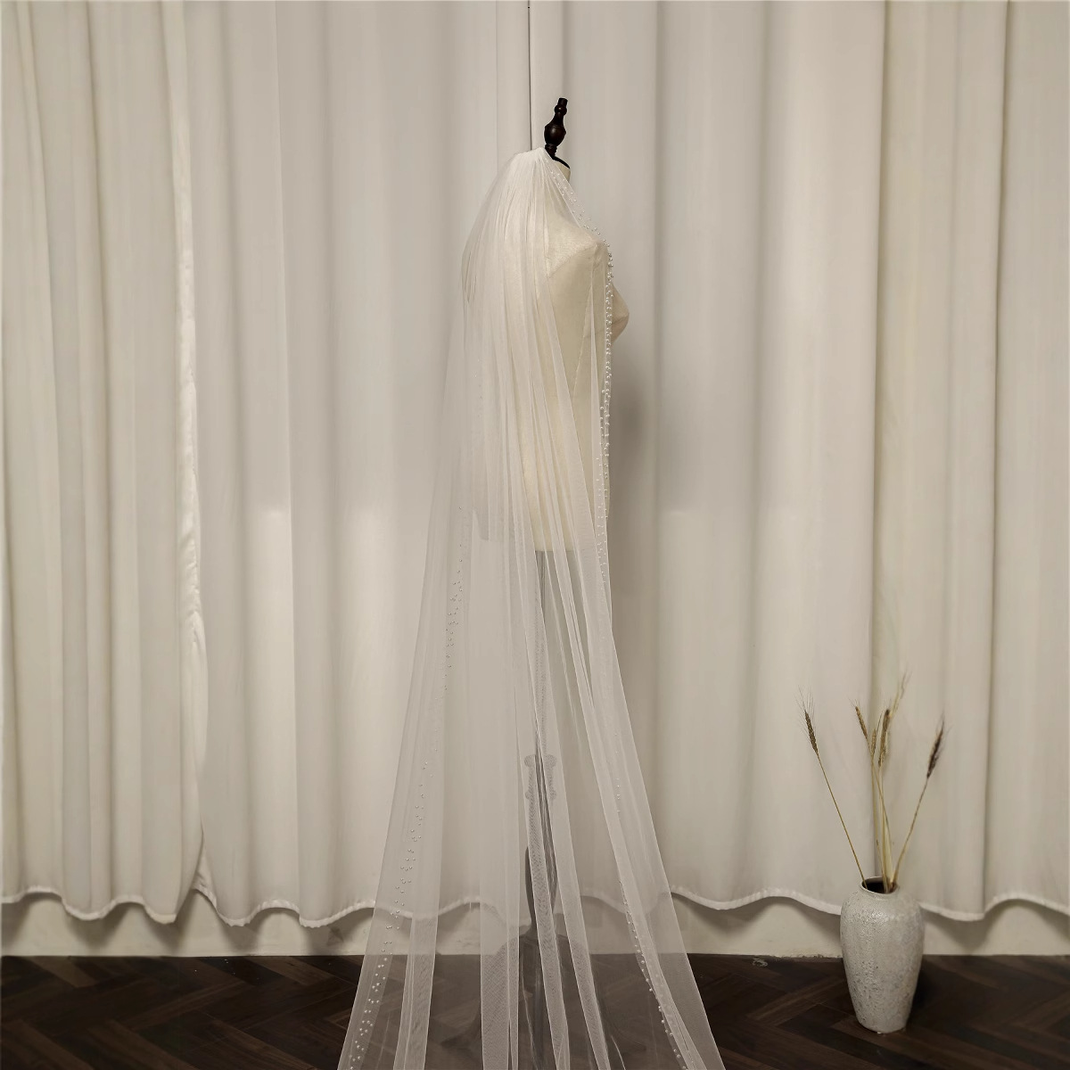 珍珠款红菱头纱2025系列HL129长款3米小教堂拖尾新娘头纱配件婚纱