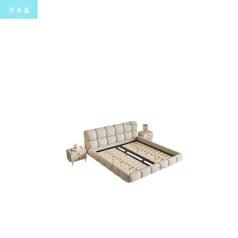 奶油风泡芙悬浮床现代简约主卧室大床双人奶油风布艺婚床1.8米双