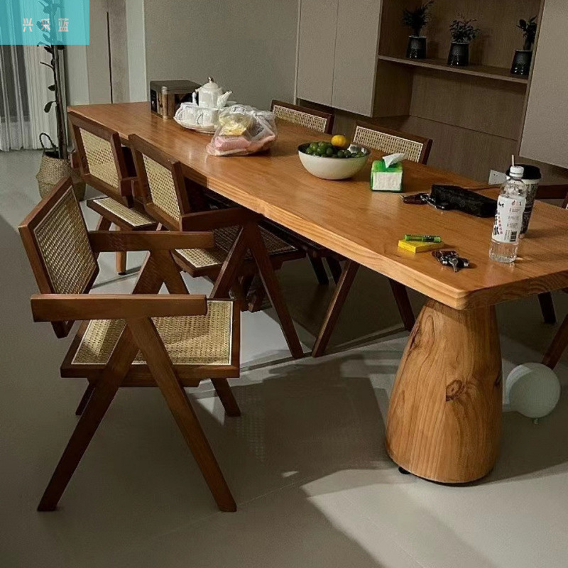 侘寂风家用小户型餐桌椅北欧实木长方大板中采蓝书桌工作桌会议桌