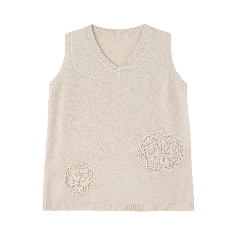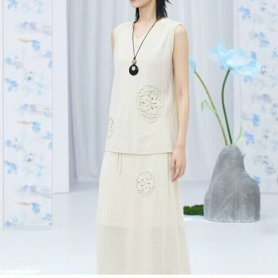 绿绒蒿系列莱赛尔亚麻背心半裙套装女25秋季针织钩花套装(马甲)