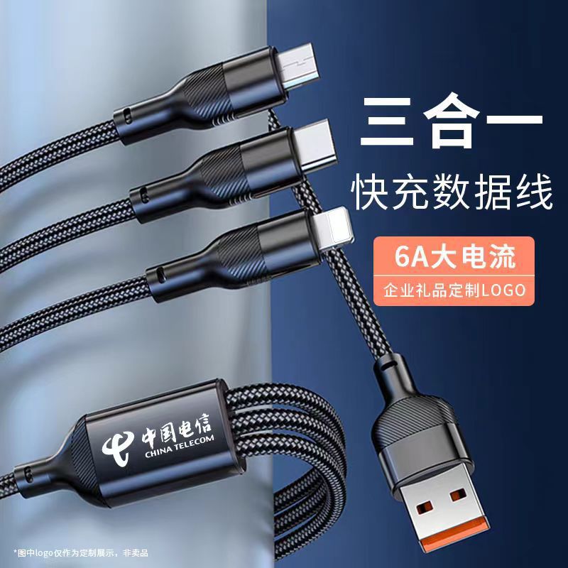 铂睿鱼丝100w超级快充type-c尼龙编织6A数据线三合一充电线一拖三