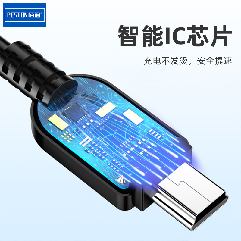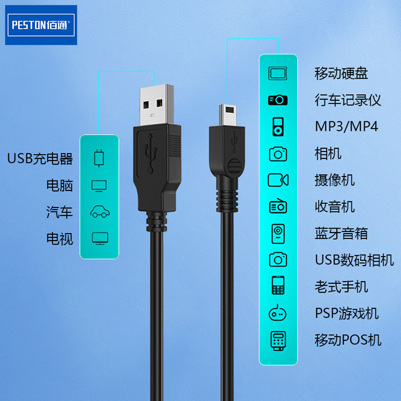 佰通批发V3口 5P数据线 梯形T型口 充电线 mini USB数据线黑色