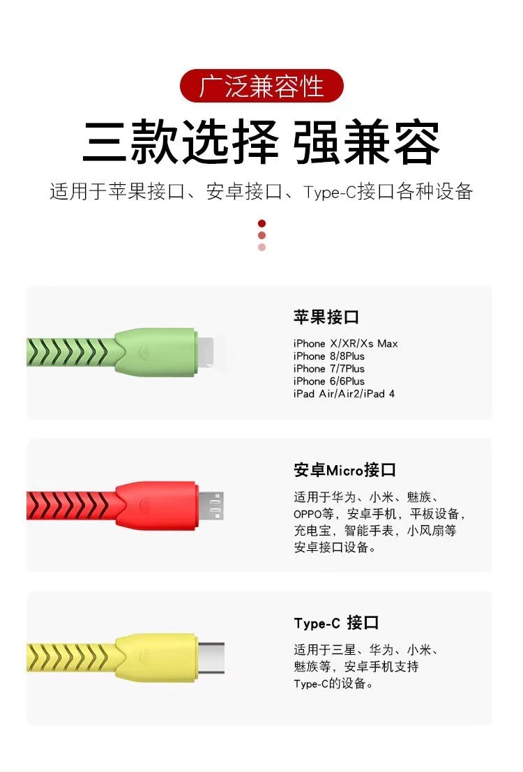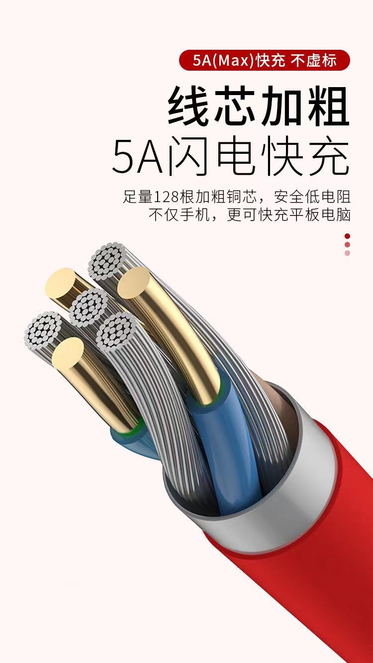工厂直销 新款液态软胶数据线 彩色硅胶快充线 适用华为5A快充线