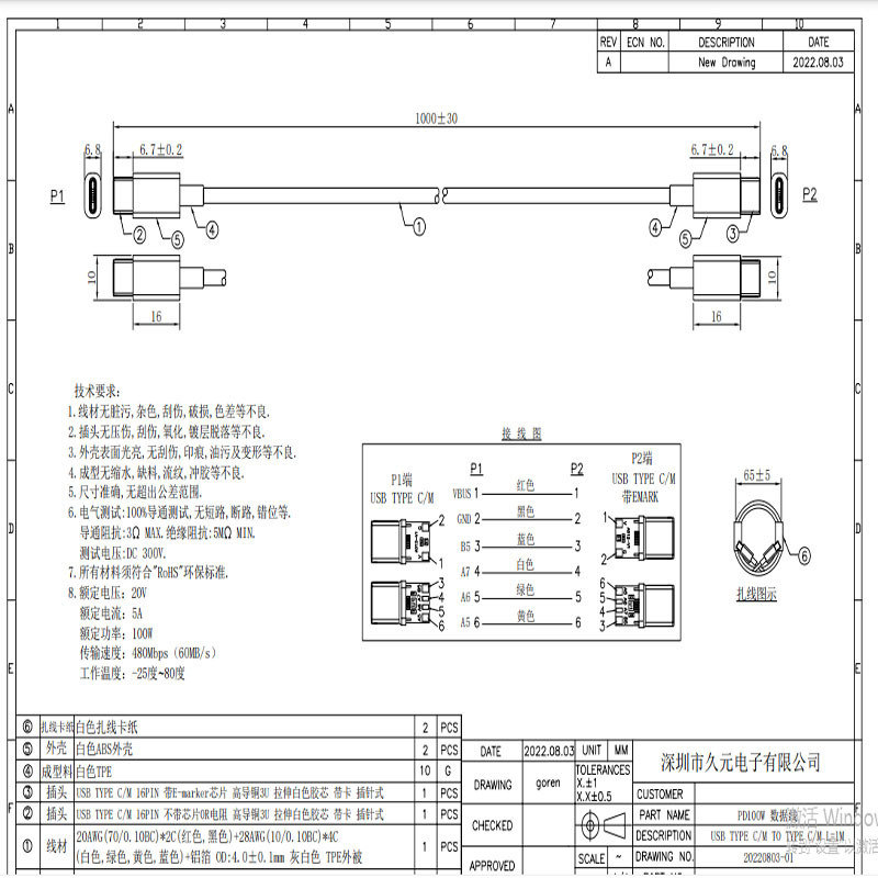 工厂足瓦100W数据线TYPEC快充线100瓦充电线C对C5A线PD100w快充线