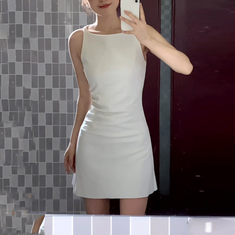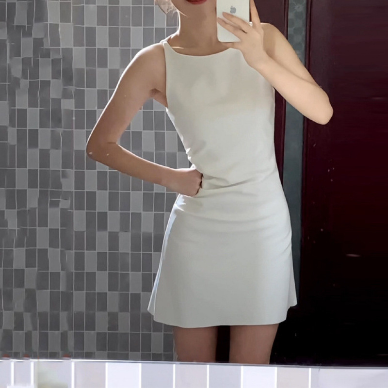 跨境法式感小个子短款简约白色吊带小礼服气质修身连衣裙裙子女装