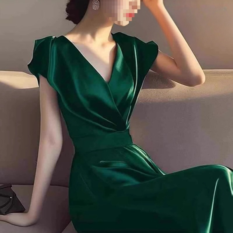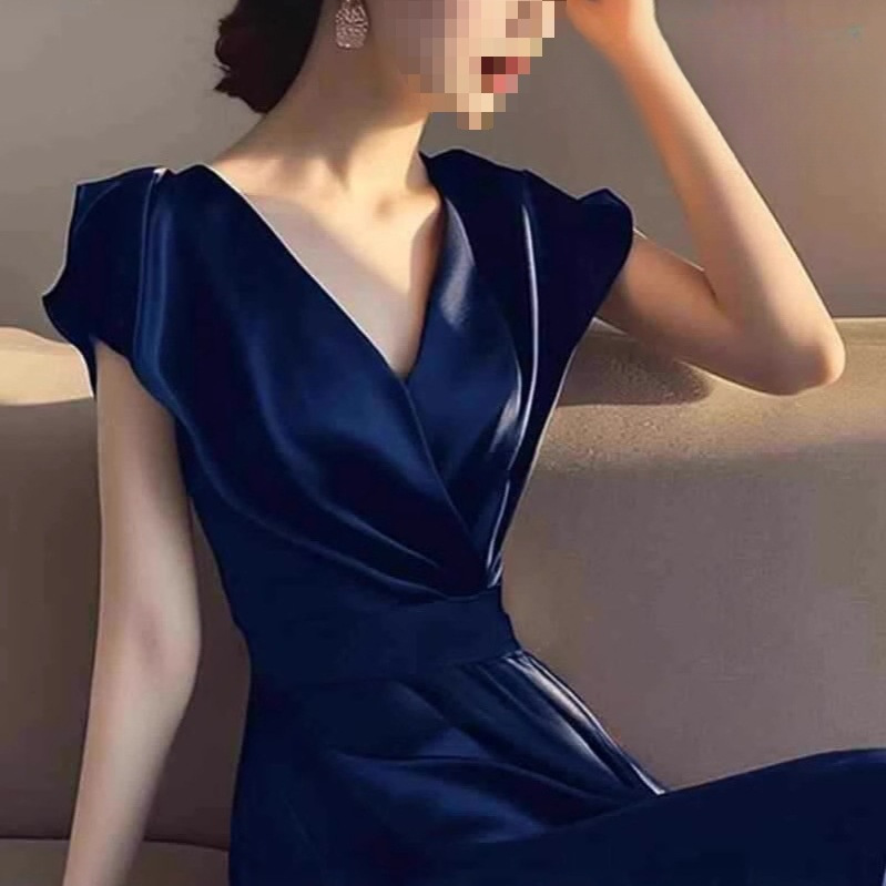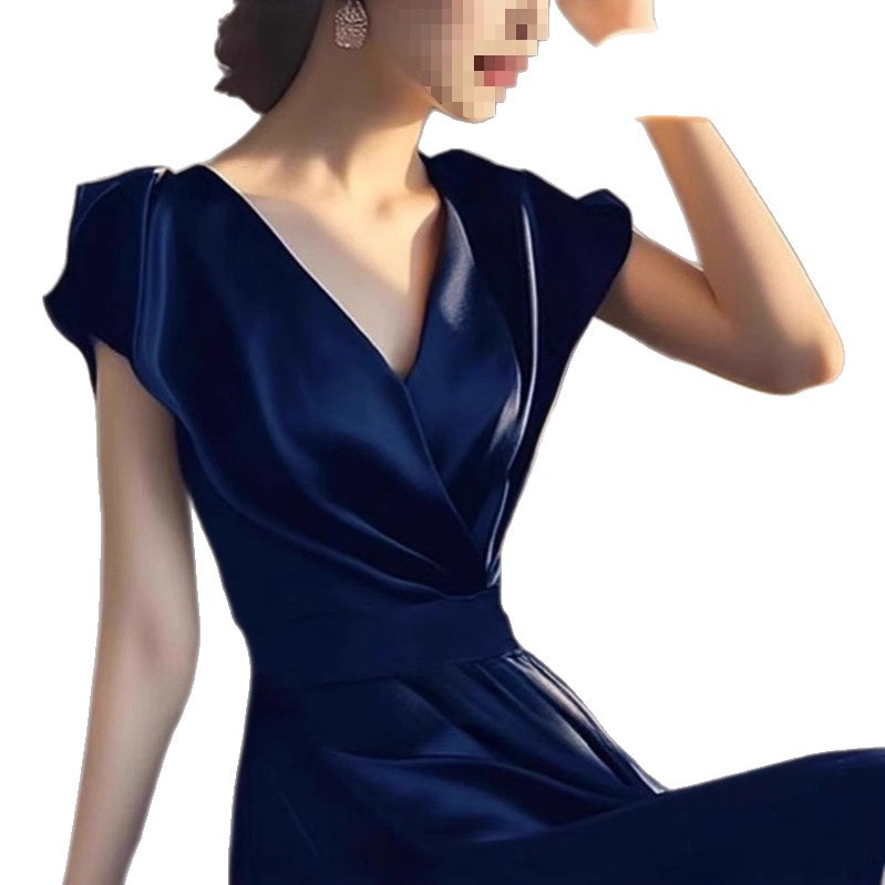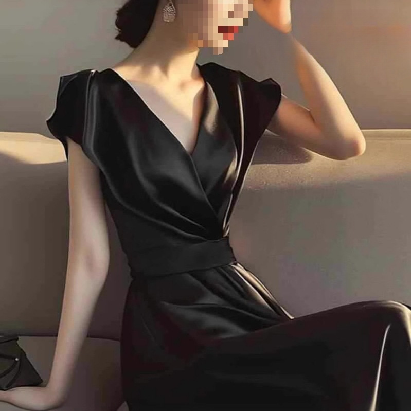 跨境FL240362正式场合感长裙赫本风名媛显瘦黑色短袖连衣裙子