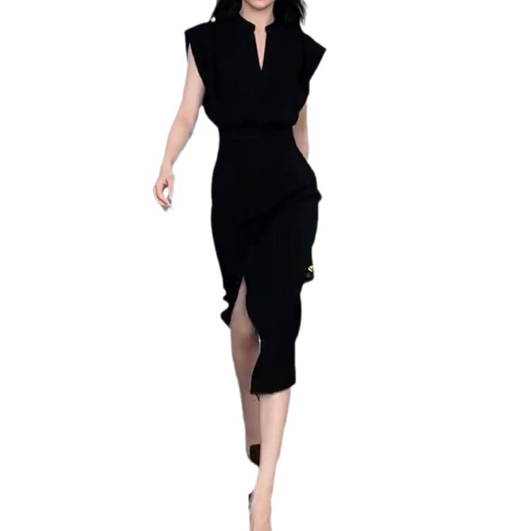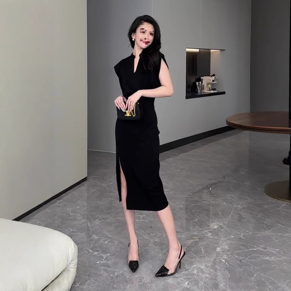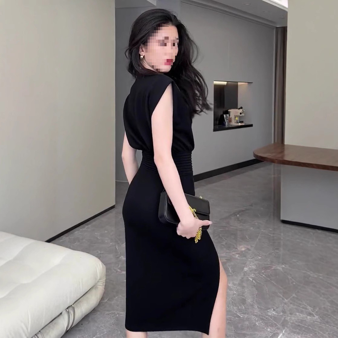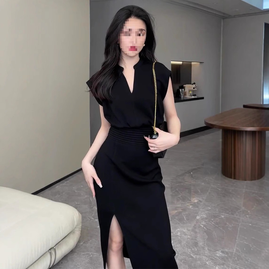 跨境FL231416夏季新款黑色连衣裙女阔太太裙子御姐轻熟风配高跟鞋