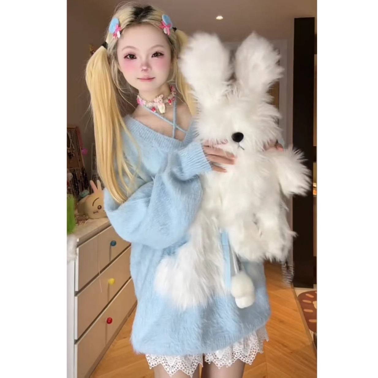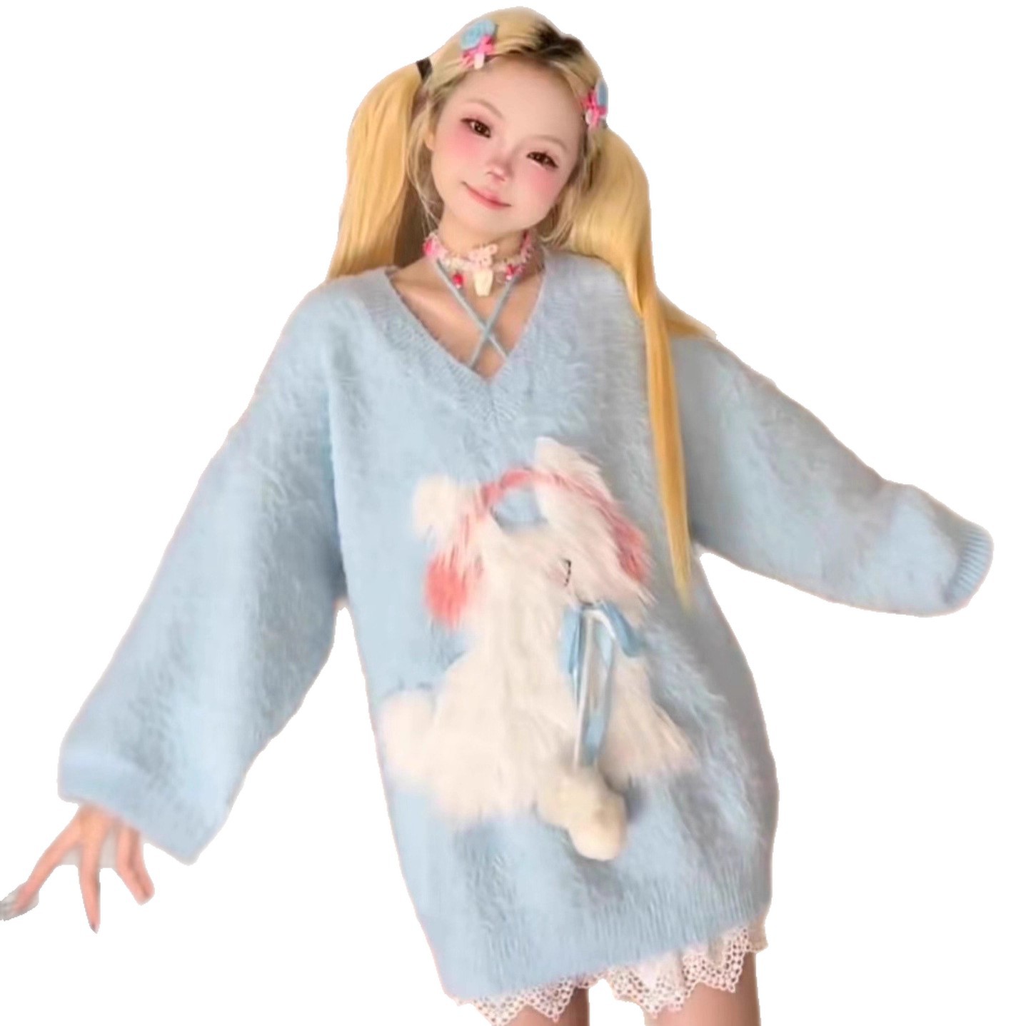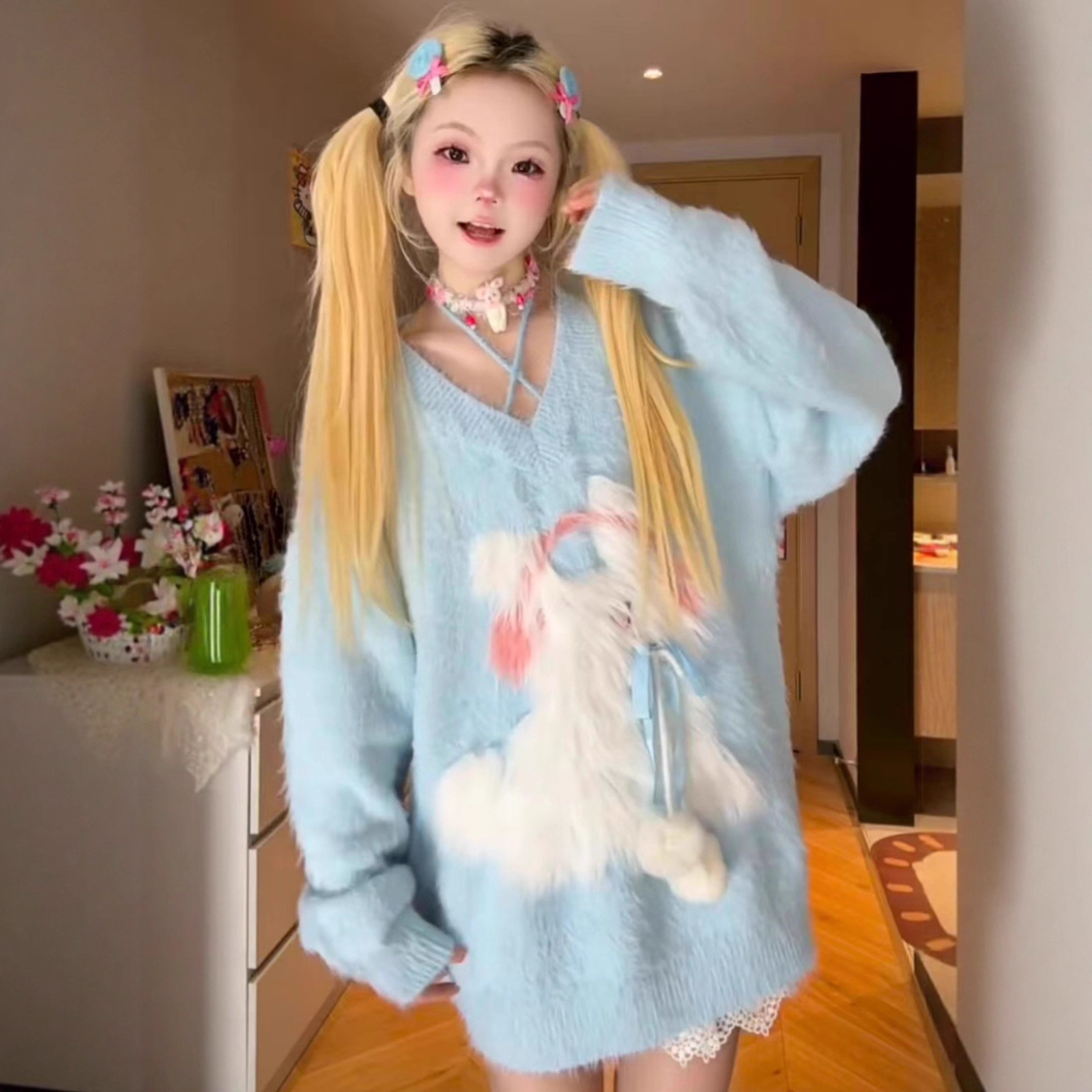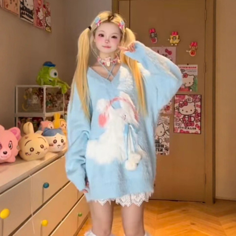 2025秋冬季女装新款吊带仿貂挂脖甜美少女可爱猫咪刺绣针织毛衣女
