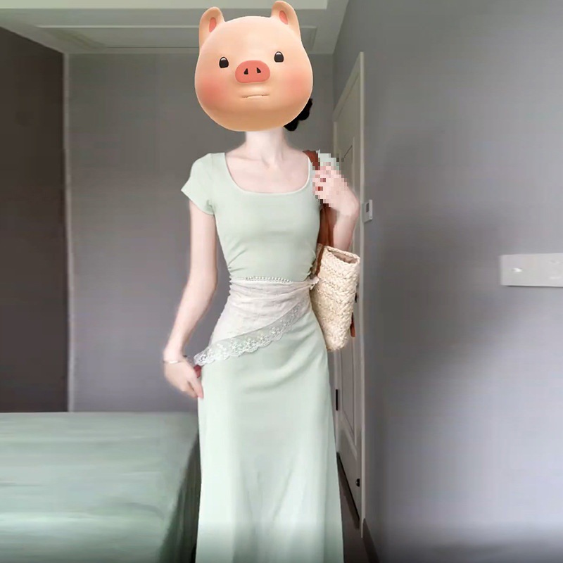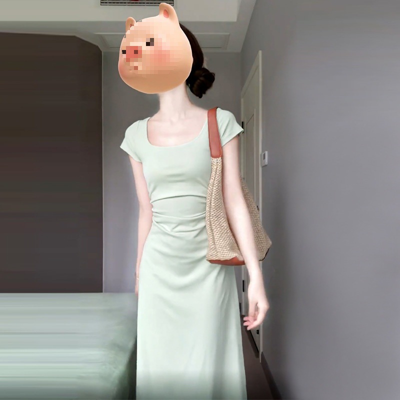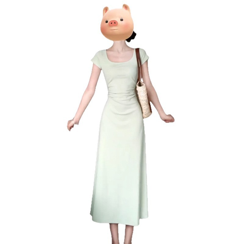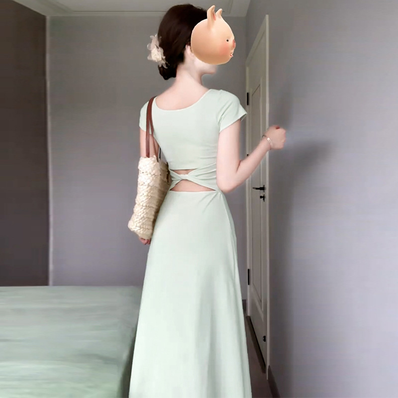 跨境法式温柔风露背绿色连衣裙子女夏季2025年新款小个子收腰气质