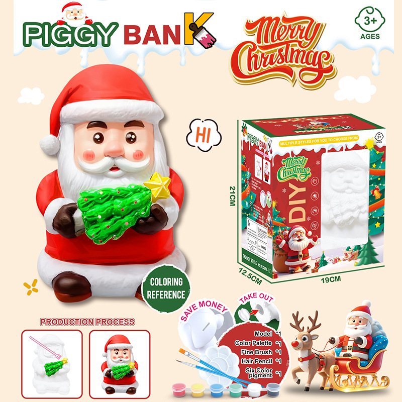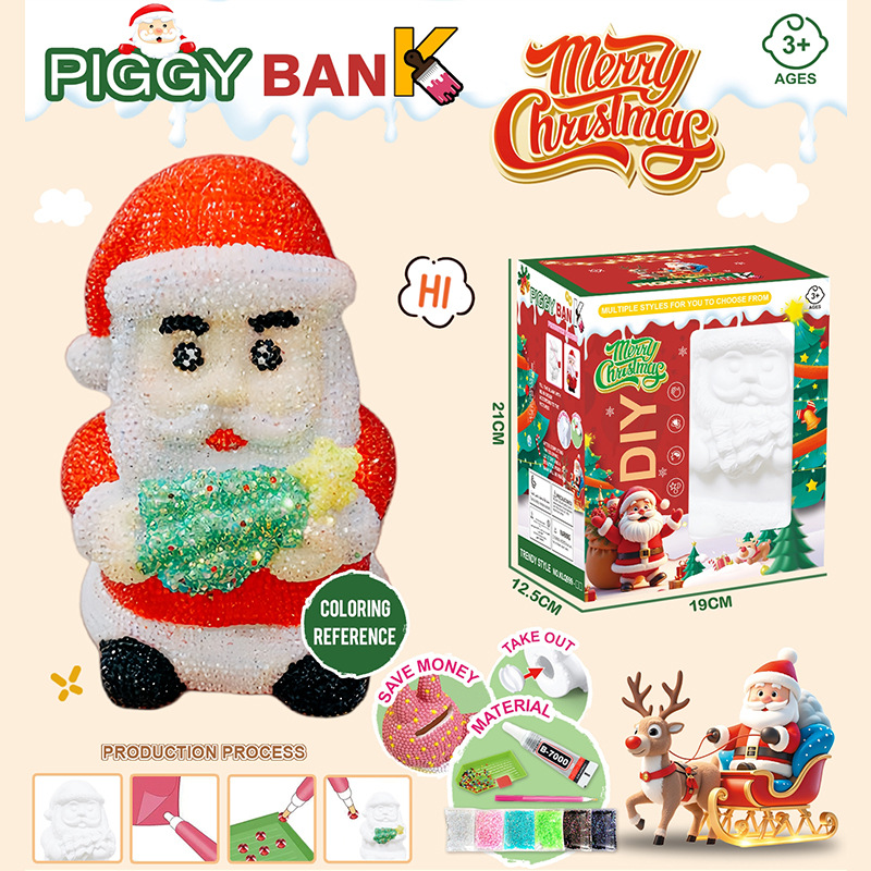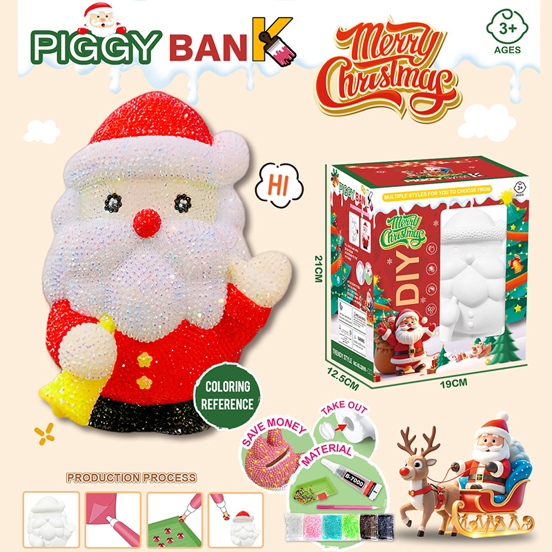 跨境圣诞节DIY涂鸦彩绘存钱罐玩具灯光音乐手提灯笼点钻批投币