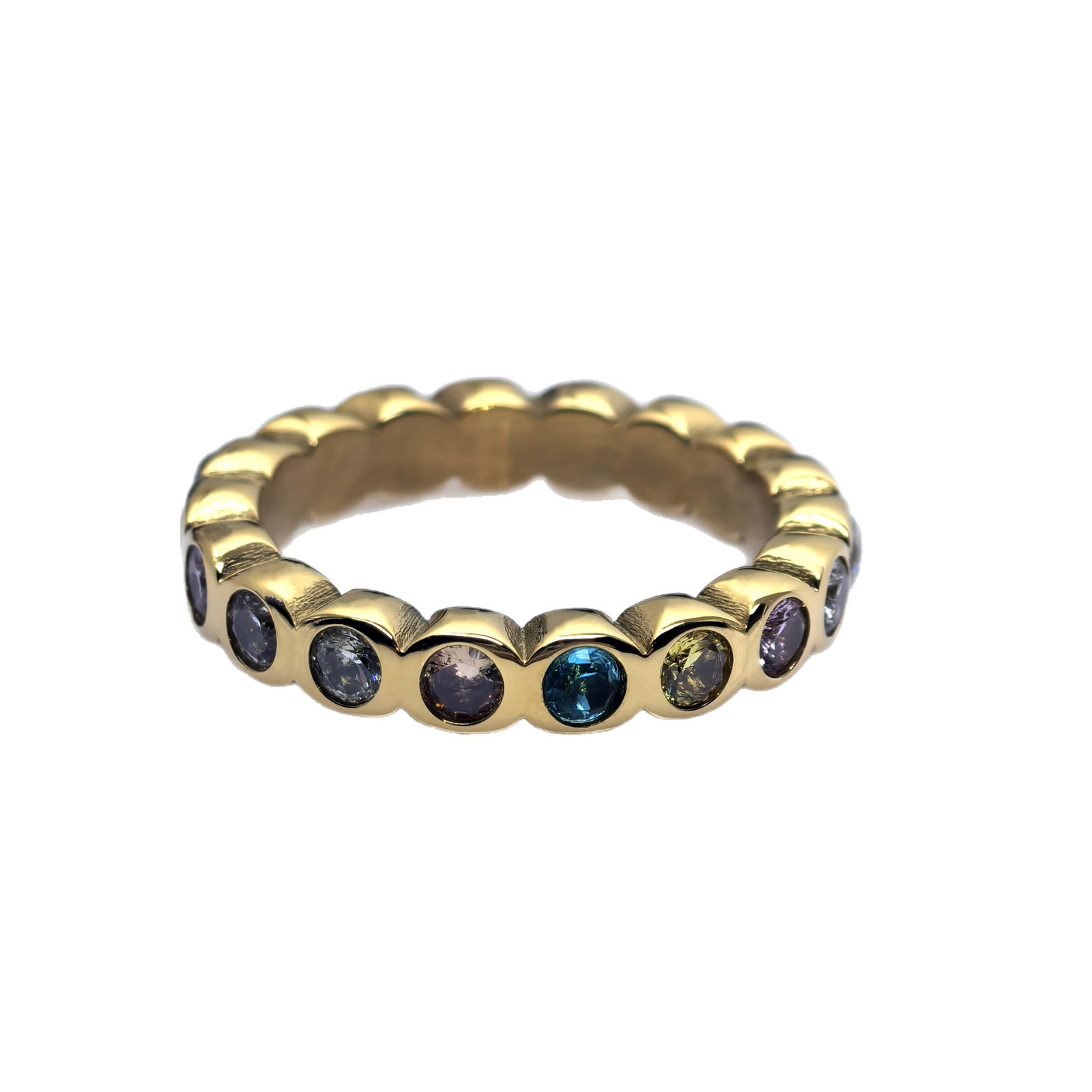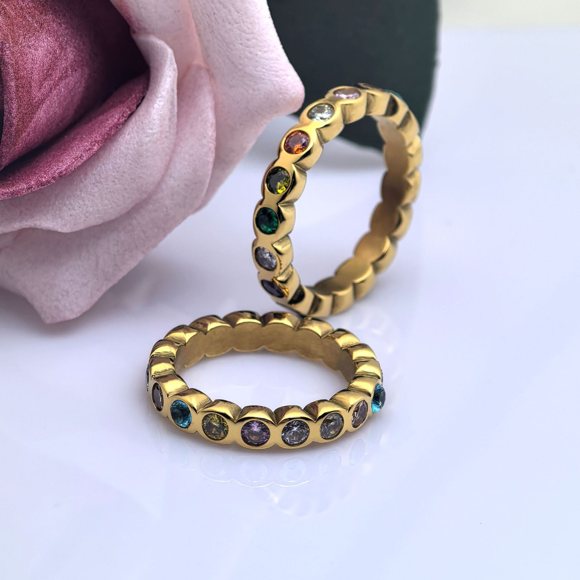 亚马逊畅销不锈钢戒指镀金泡泡高级感百搭镶锆石十二月生辰石指环