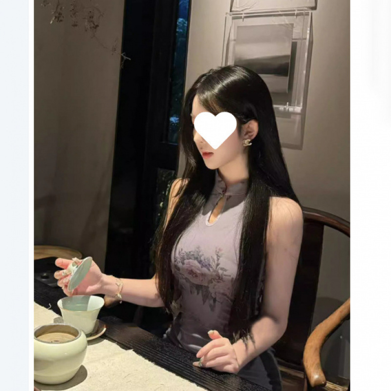 跨境紫棠丁香新中式印花镂空改良旗袍裙女复古温柔风设计感小众开
