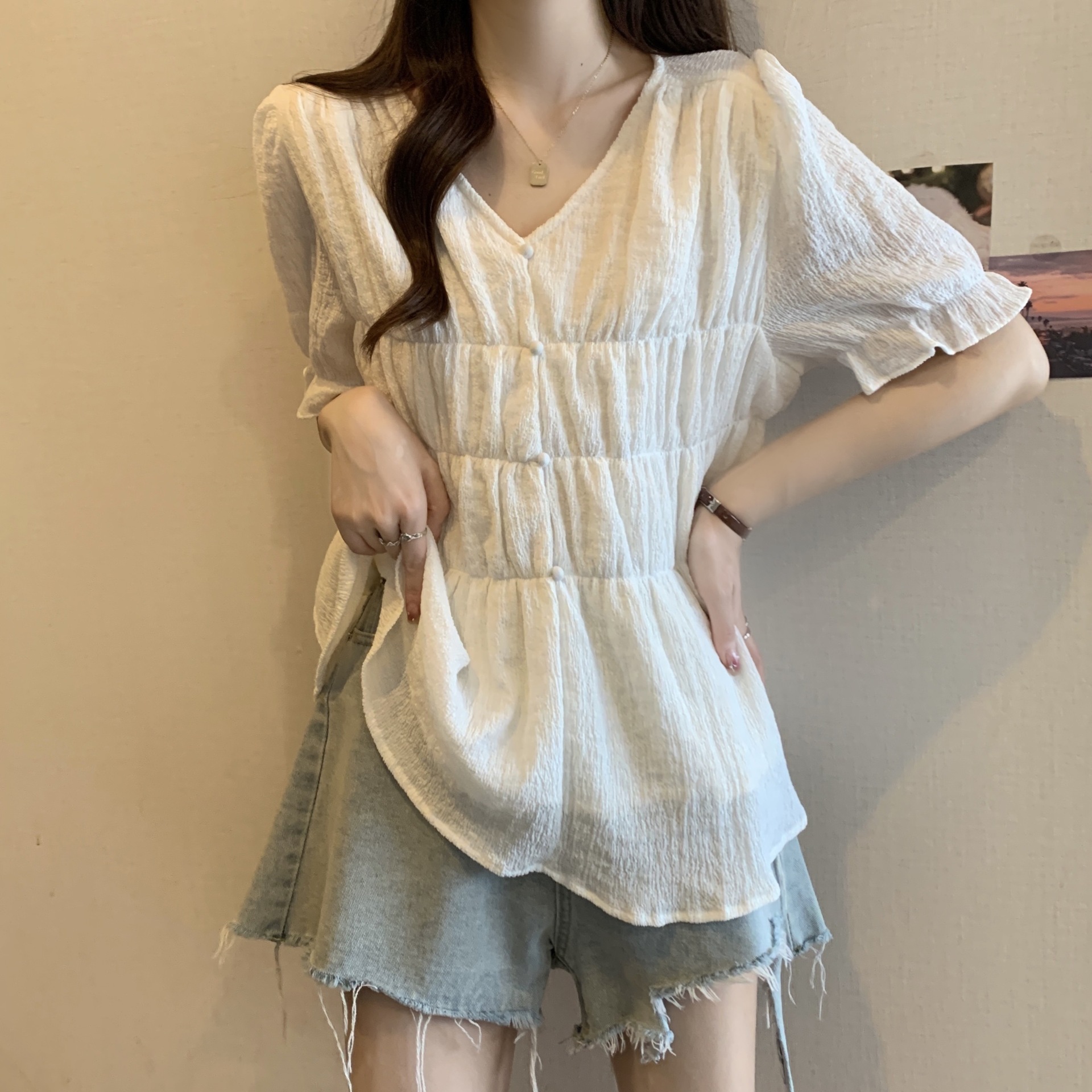 领型 | V领 | | 袖型 | 泡泡袖 |