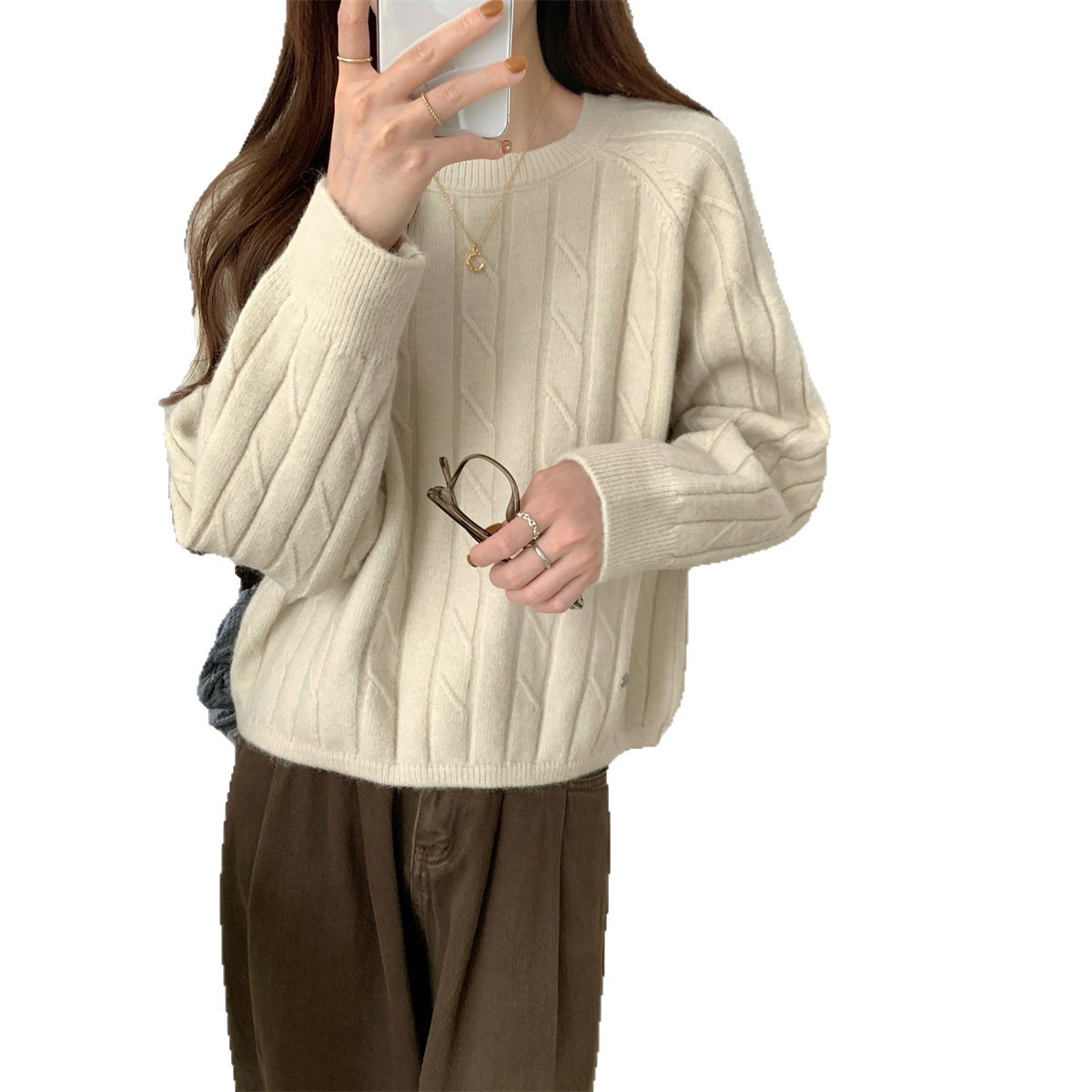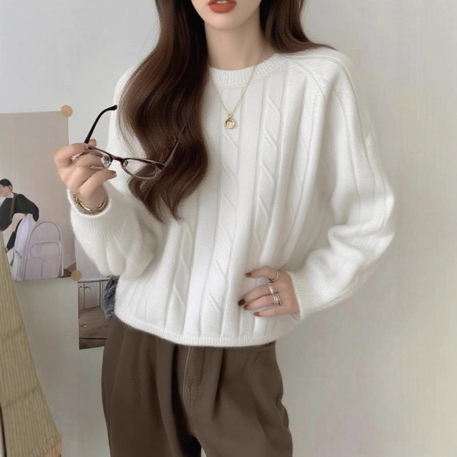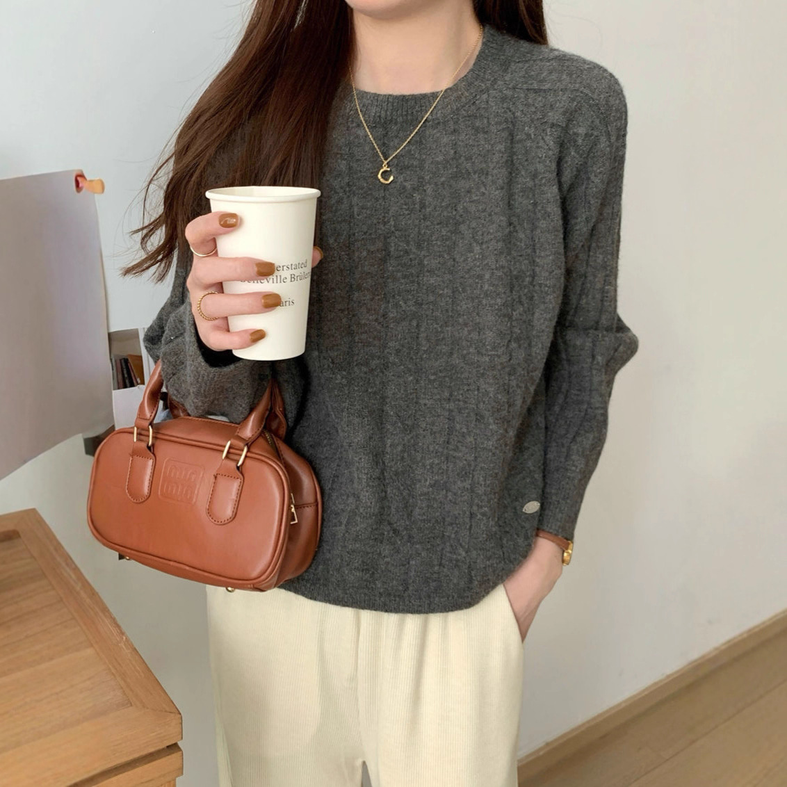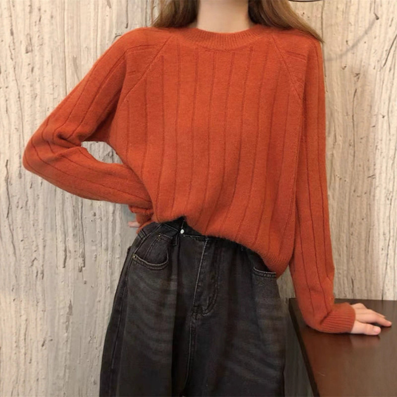 秋冬新款小清新针织衫学院风套头毛衣女打底衫圆领坑条洋气内搭潮