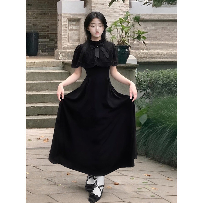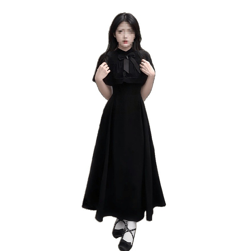 跨境哥特日系暗黑连衣裙2025蕾丝新款气质甜美蝴蝶结显瘦收腰长裙