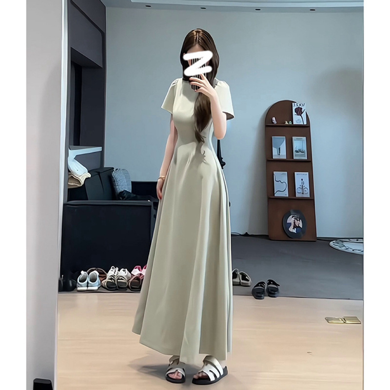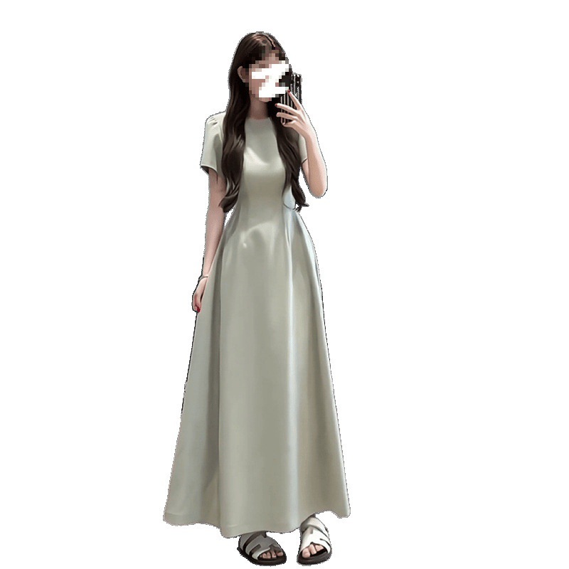 跨境茶歇法式赫本气质绿色连衣裙女夏季2025新款小个子感裙子收腰