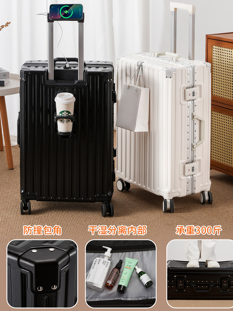 | 颜色 | 酒红色【合金铝框+加厚加硬】 【抗压防爆可坐】 | 颜色 | 轻奢白【防爆拉链款+日常容量】 【金属防撞包角】 |