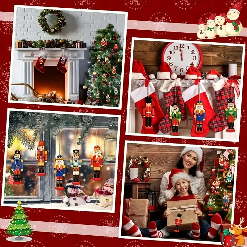 圣诞胡桃夹子饰品木质悬挂微型胡桃夹子传统假日装饰胡桃夹子风格