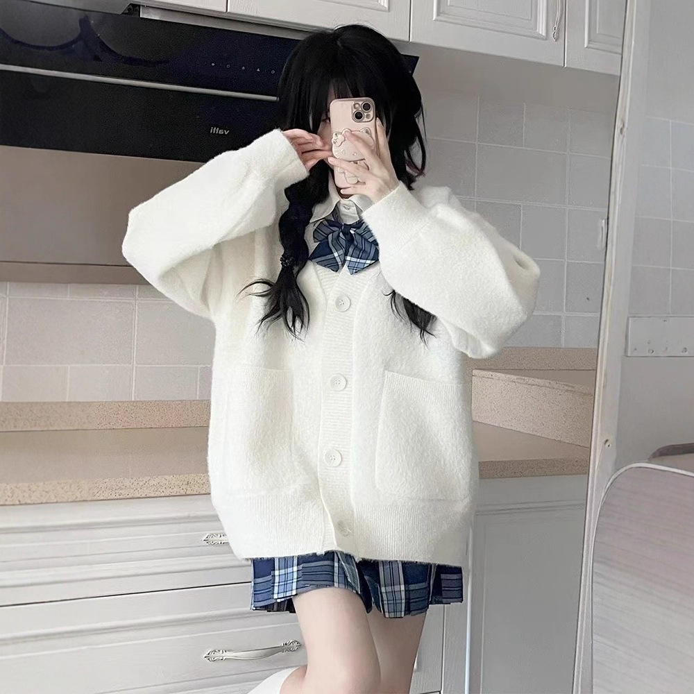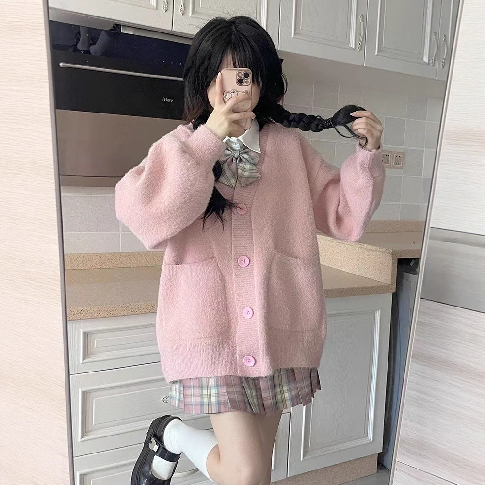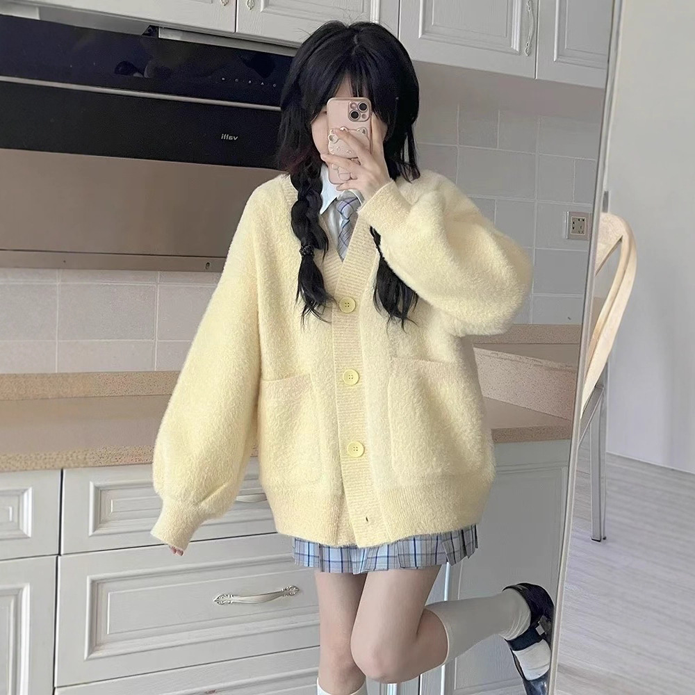 韩系秋冬款款宽松针织开衫女百搭宽松休闲慵懒仿貂绒毛衣外套上衣