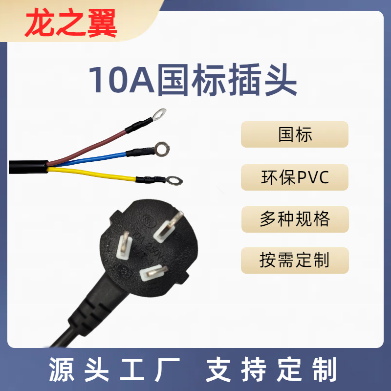 10A国标插头三插线0.75平方舞台音响设备国标电源线三芯插头