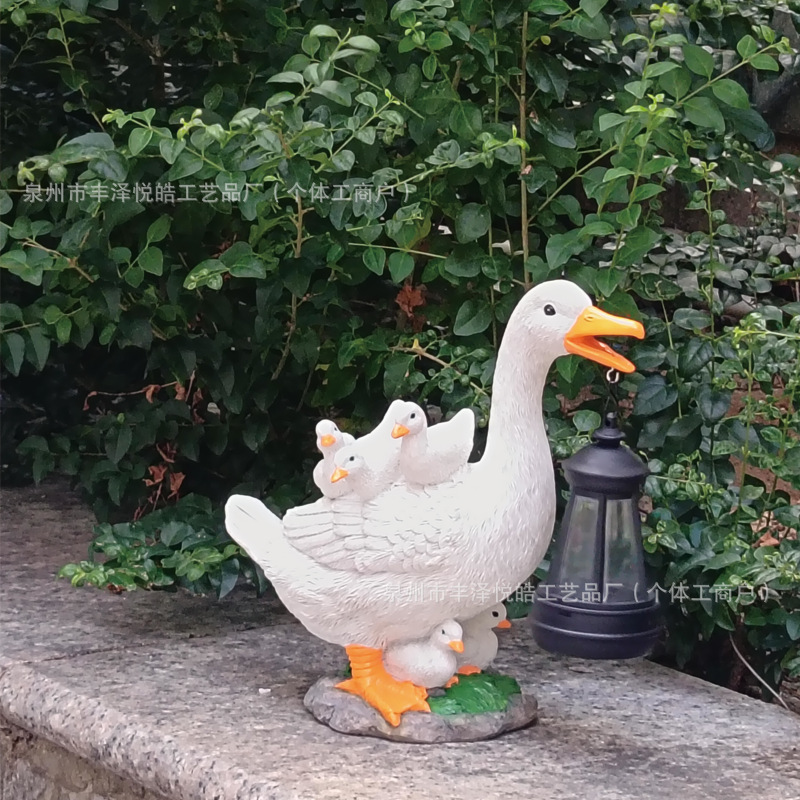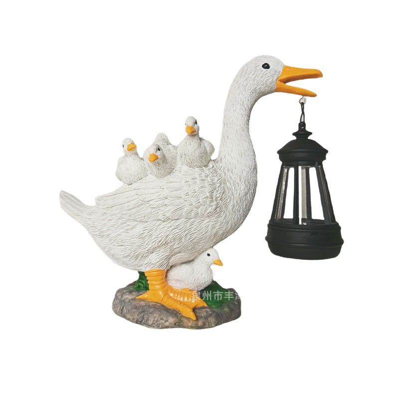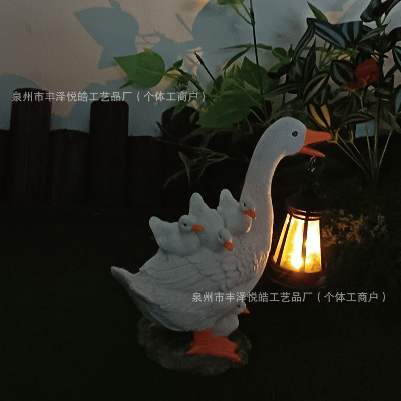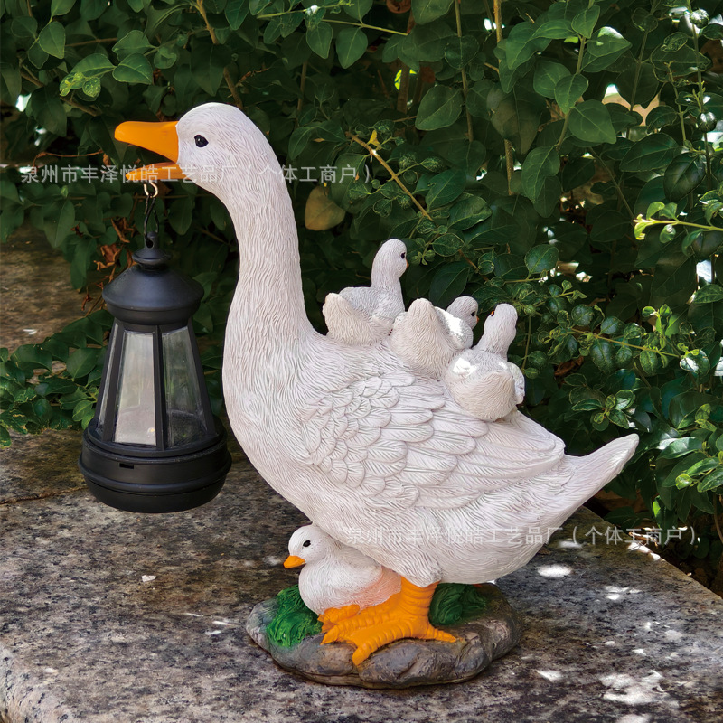跨境户外新款仿真创意鸭子太阳能花园摆件装饰庭院造景树脂工艺品