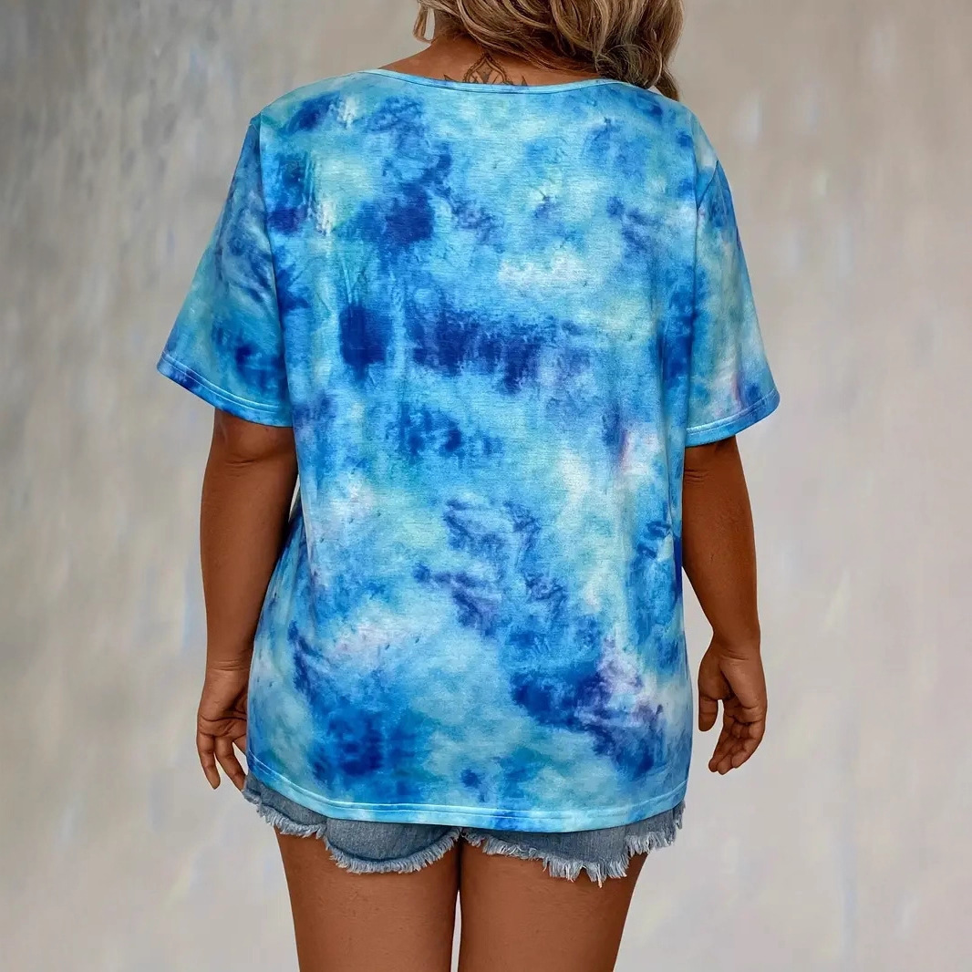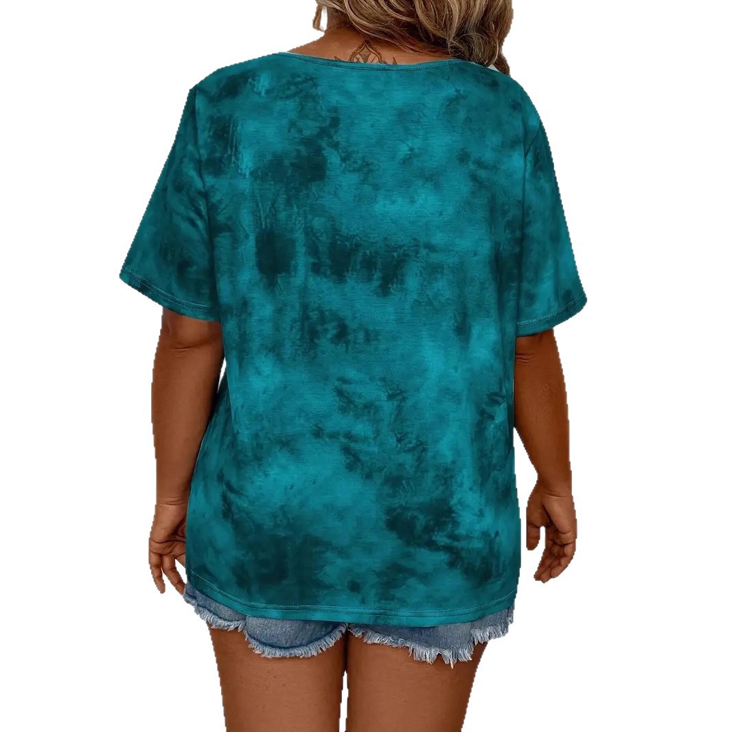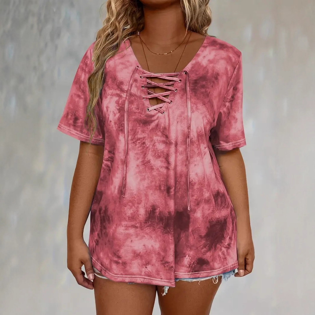 欧美跨境外贸亚马逊春夏新款女装扎染印花穿绳休闲时尚短袖T恤上
