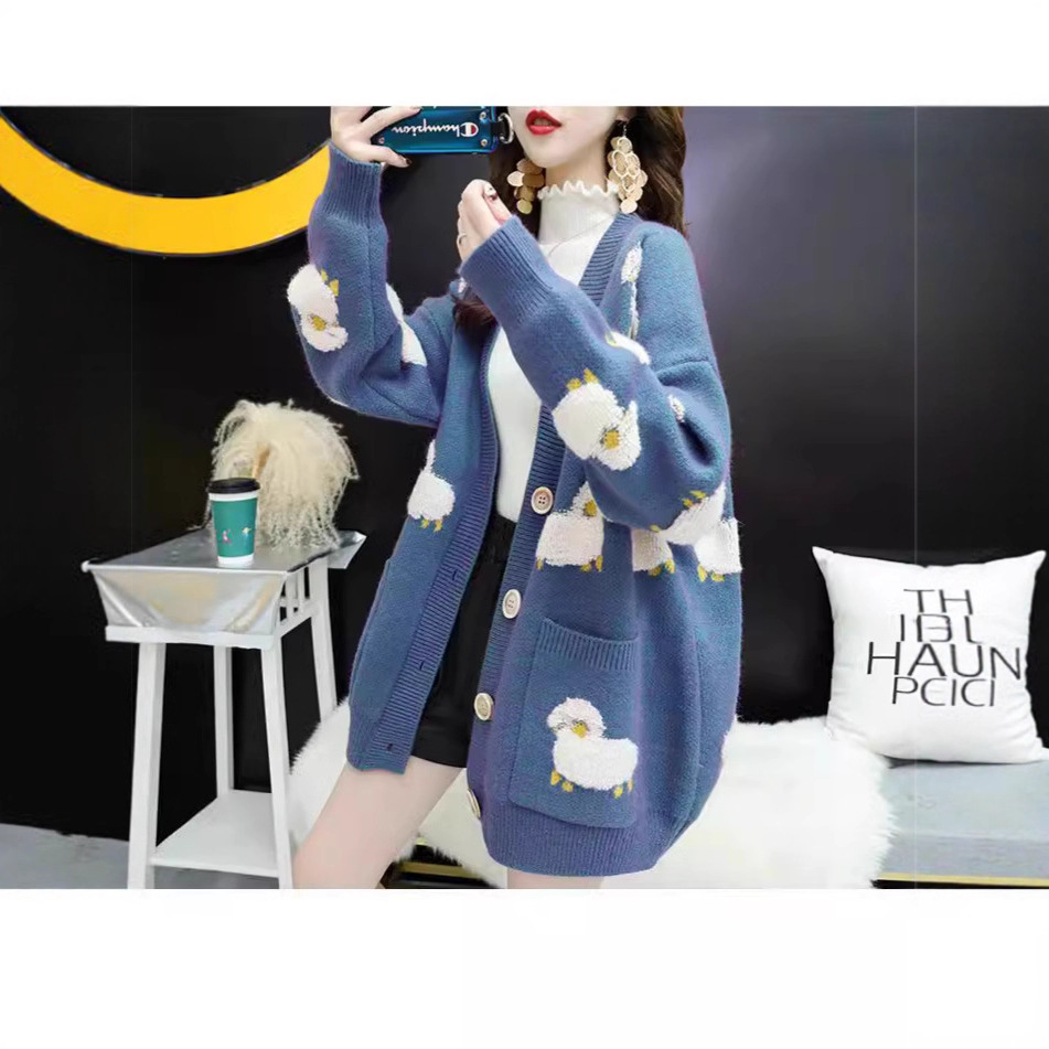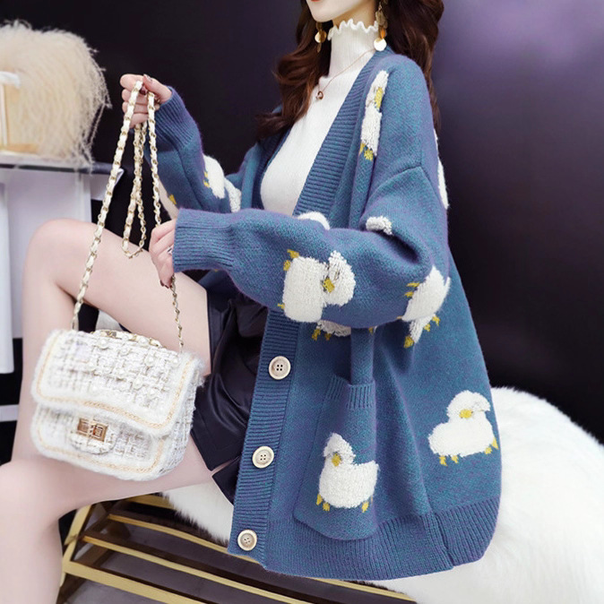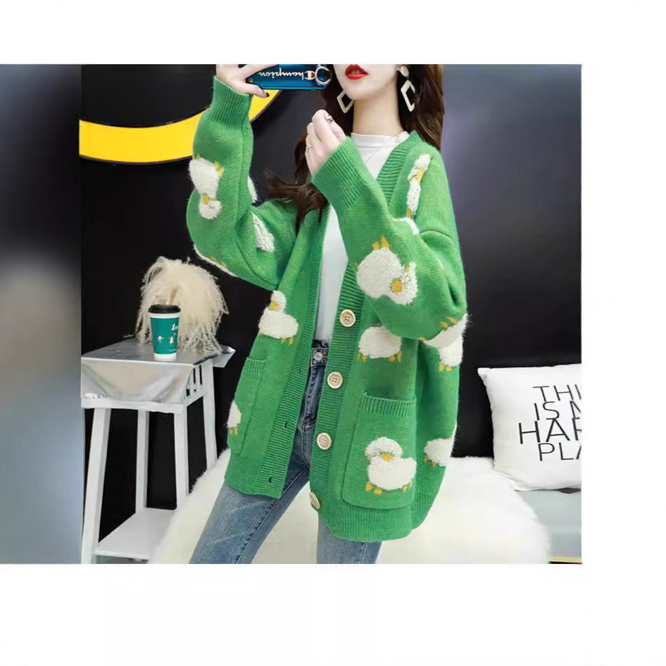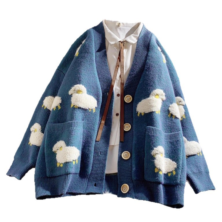 跨境外贸毛衣女秋冬小绵羊宽松外穿韩版慵懒风针织开衫女外套批发