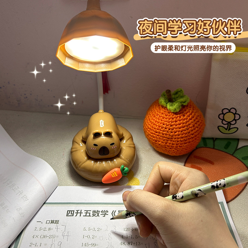 卡皮巴拉台灯水豚趴趴窝萌宠USB宿舍桌面床头小创意摆饰可充电