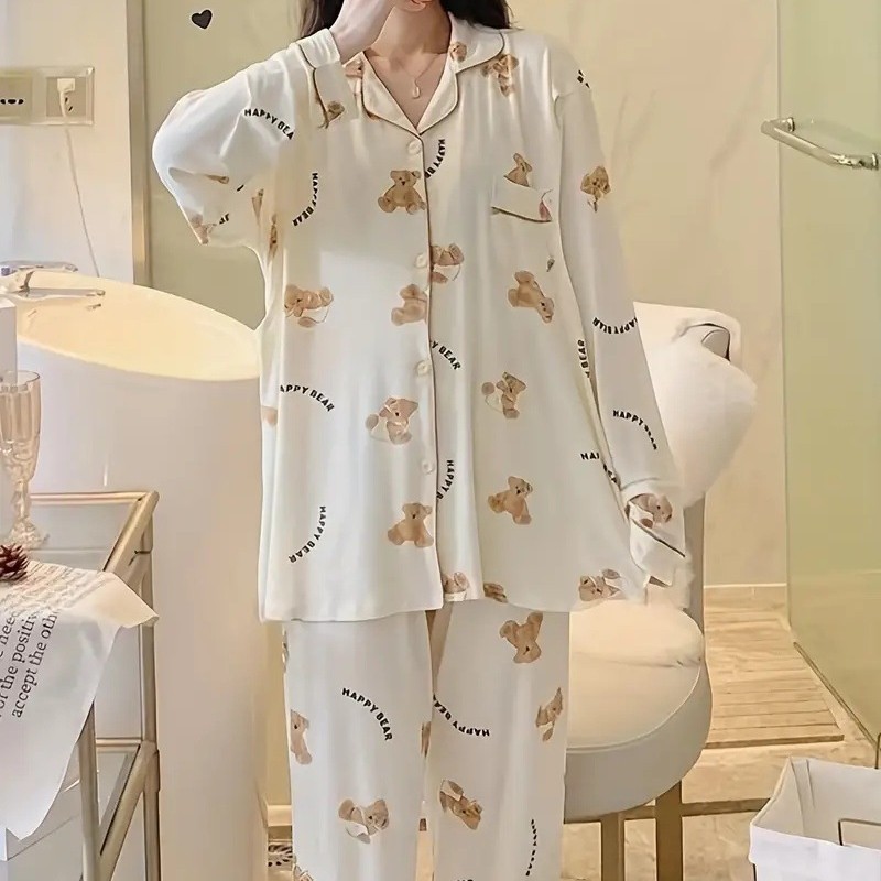 欧美跨境TEMU春秋3D数码印花长袖翻领睡衣套装女士POD一件定 制