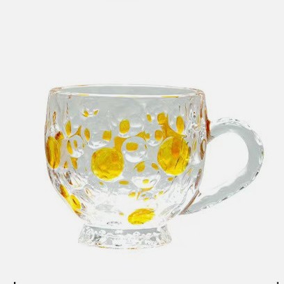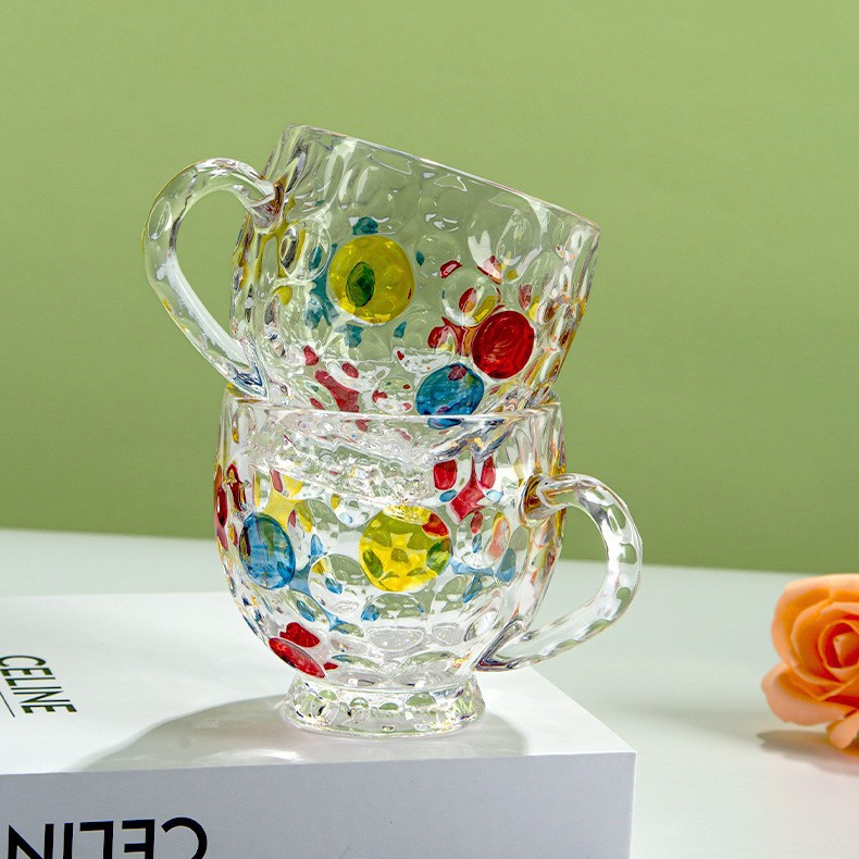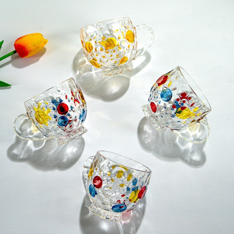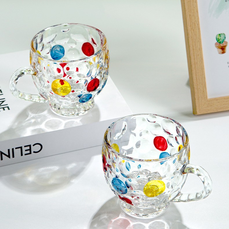 彩色珠点带把手咖啡杯创意轻奢玻璃杯水晶彩点果汁家用牛奶高颜值