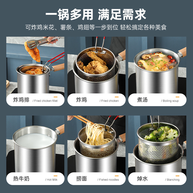 316不锈钢油炸锅家用无涂层电磁炉炸锅省油锅薯条煤气灶炸锅深锅