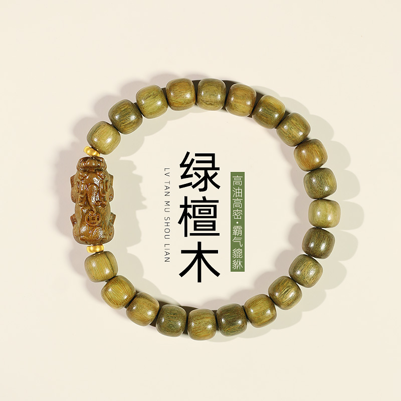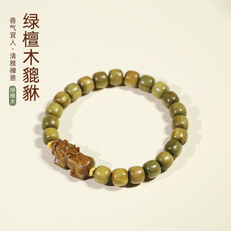绿檀木手串貔貅手女男盘玩森系木质盘串檀香木头随身文玩配饰